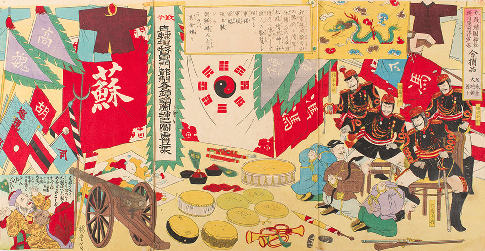 / Booty of Chinese Implements of War Displayed on the Grounds of the Yasukuni Shrine in Kudan and Various Kinds of Unused Artillery (1894)