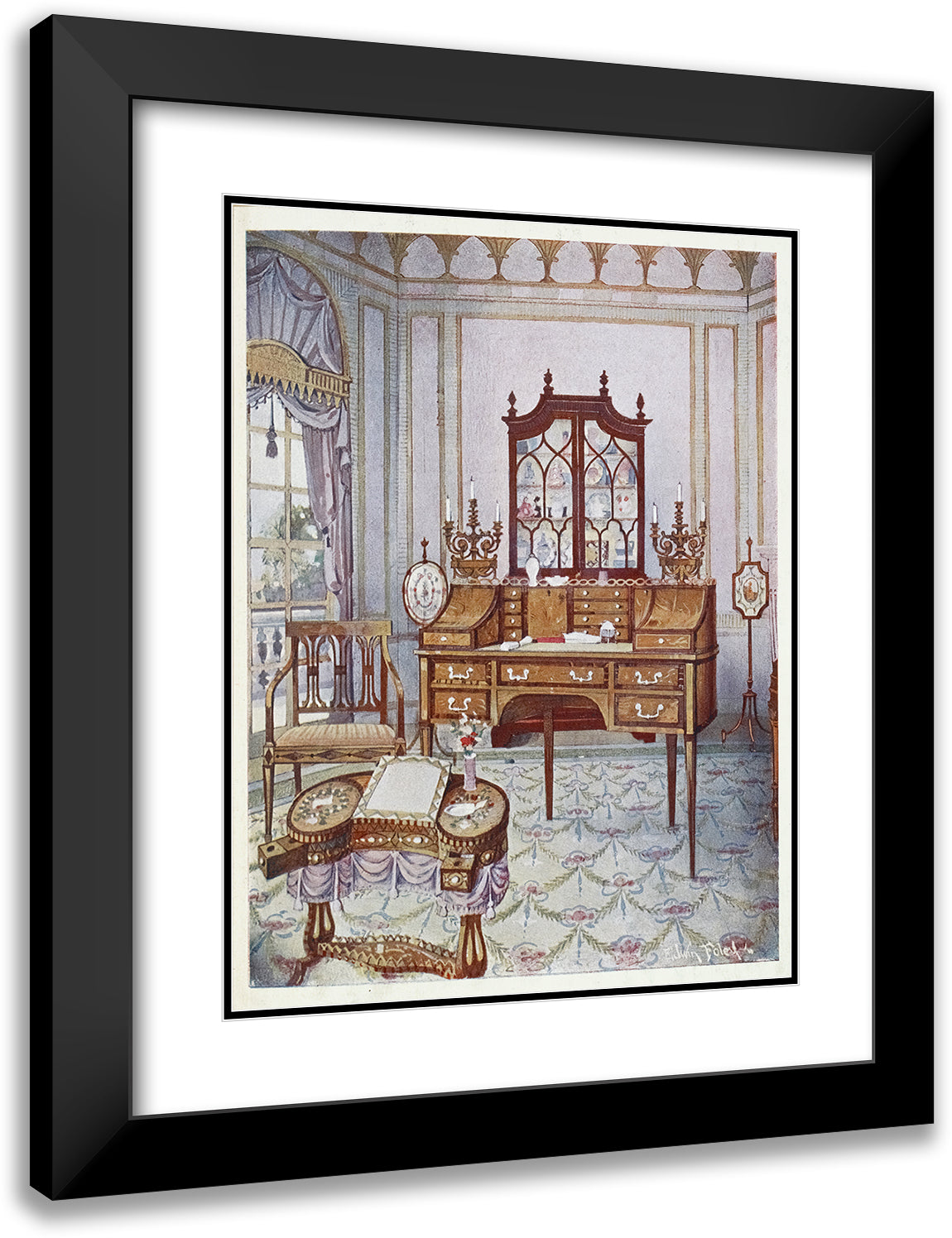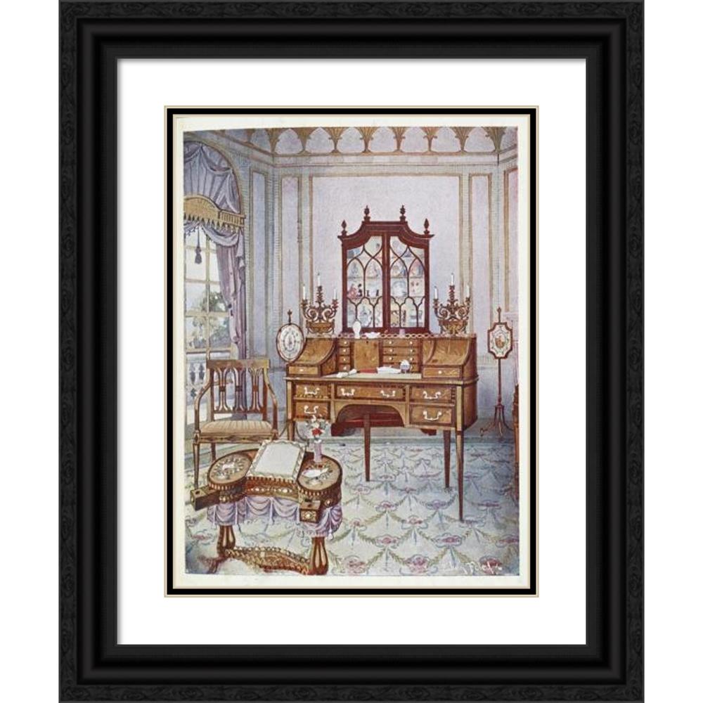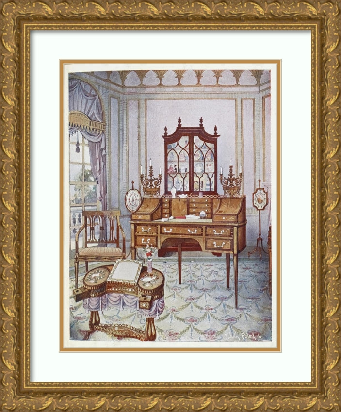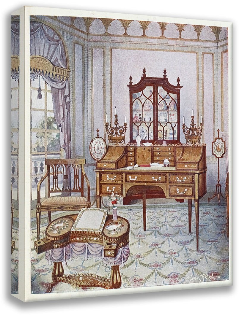 / Inlaid Mahogany Cylinder-Fall China and Book Case, D-Shaped Satinwood Drawing and Writing Table (1910 - 1911)