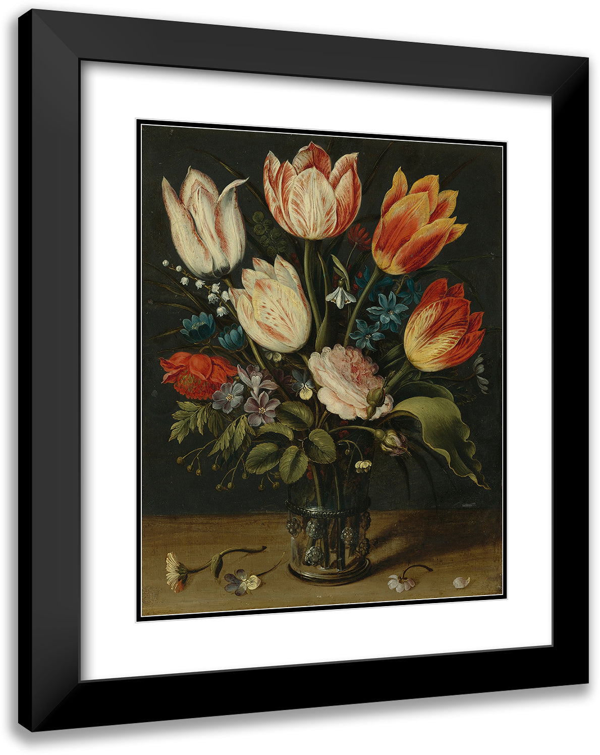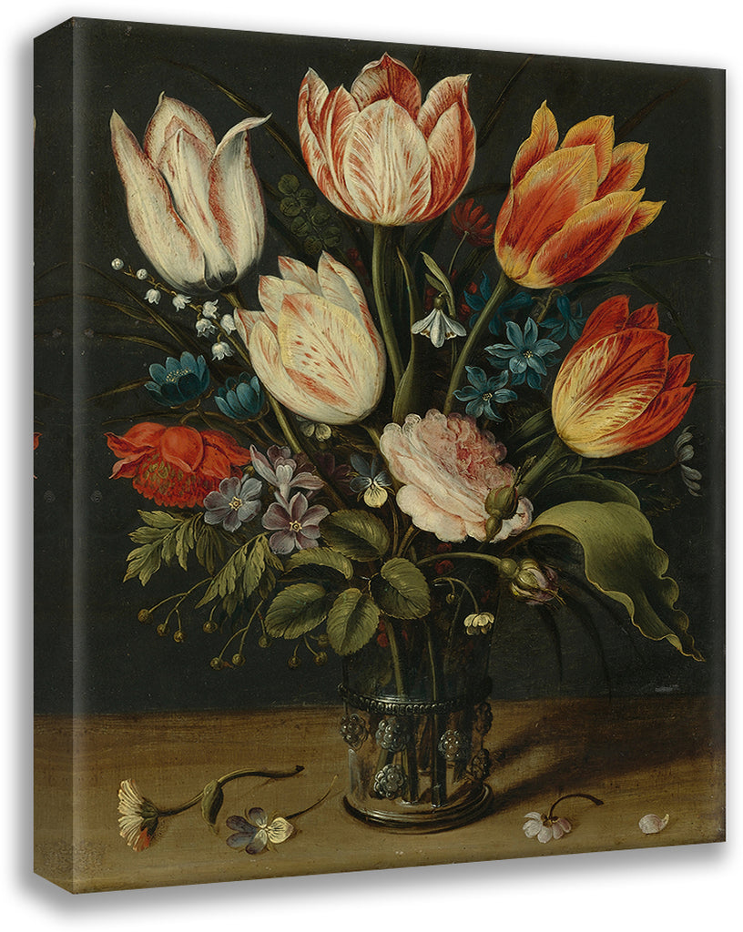 Still Life Of Tulips and Other Flowers in a Glass Vase
