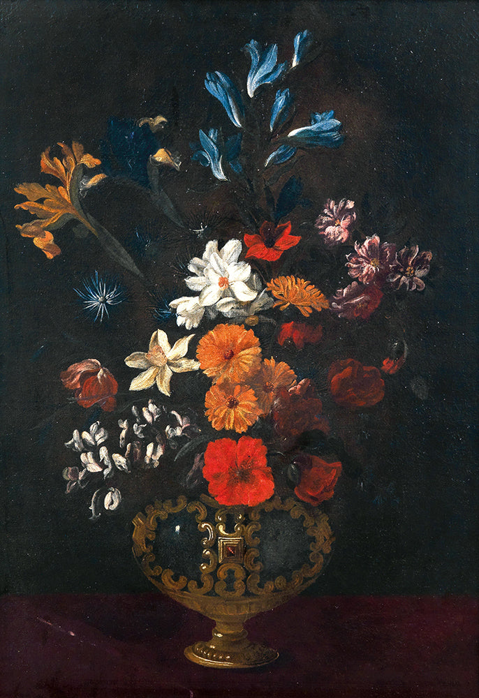 Flowers in an Ornamental Vase on a Table