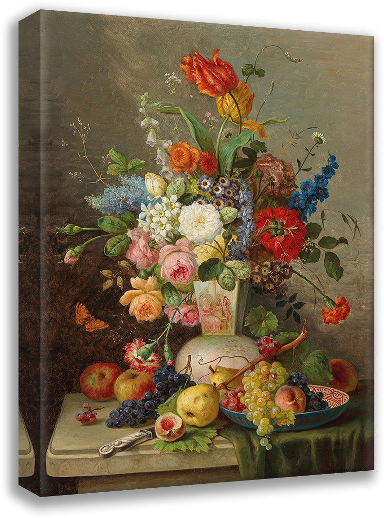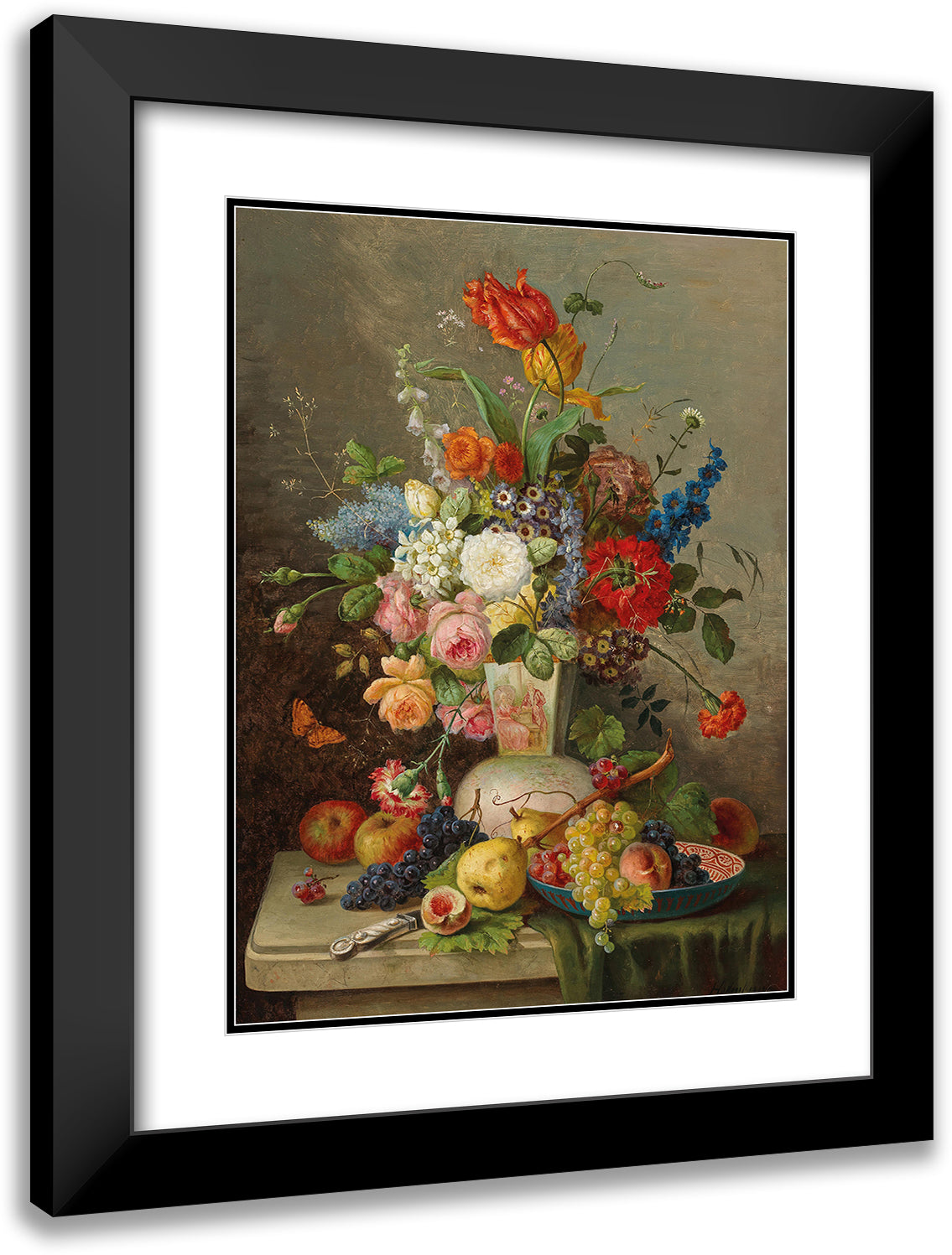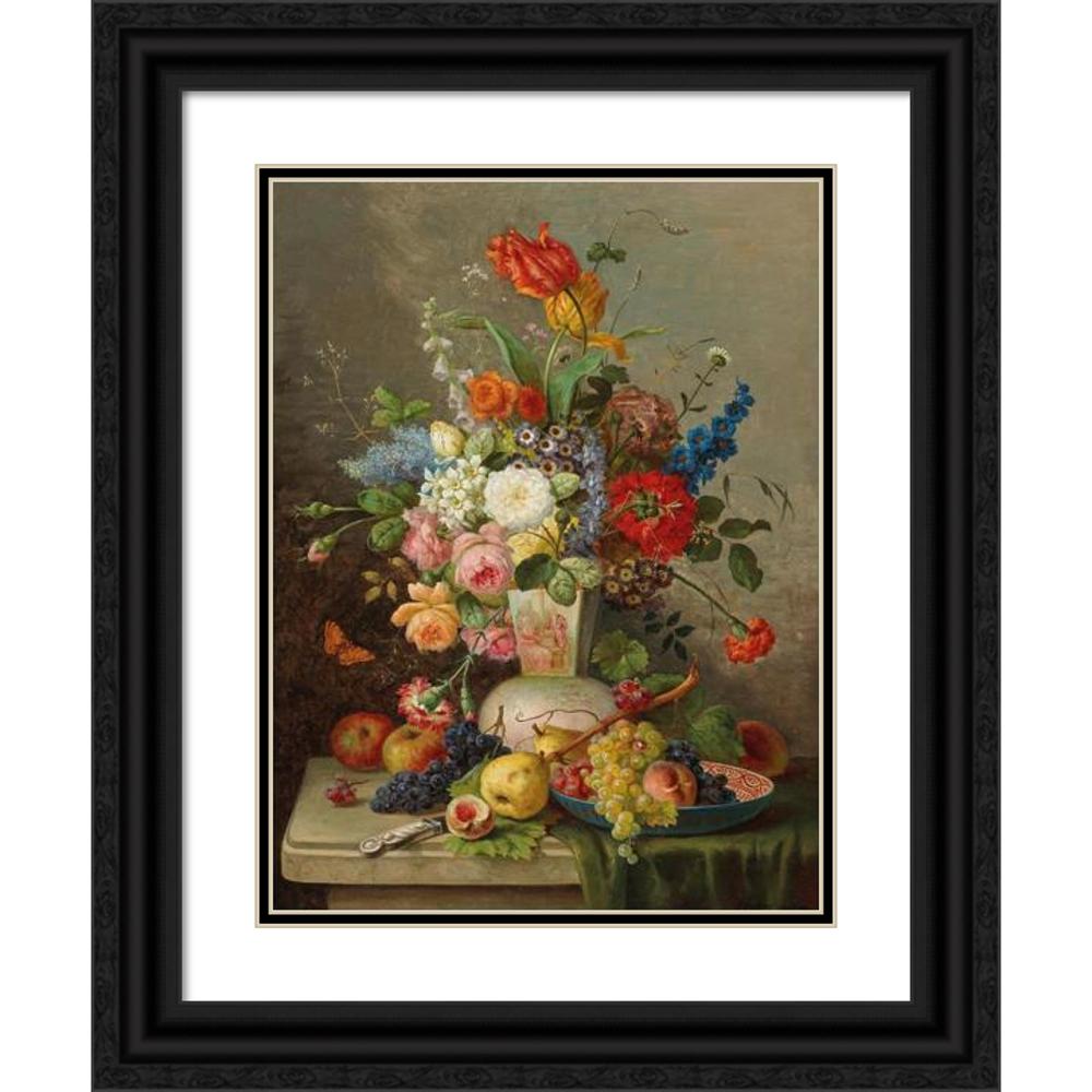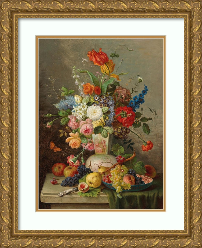 Large Piece of Flowers with Fruit on Stone Slab