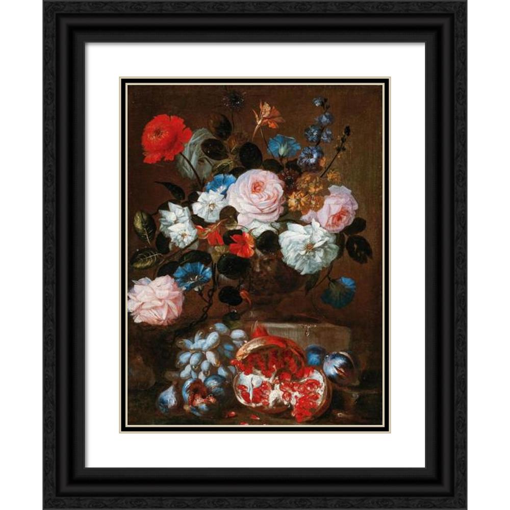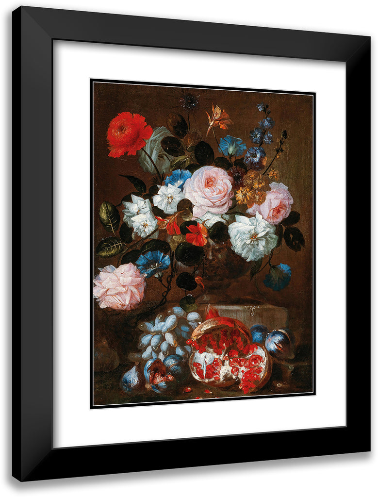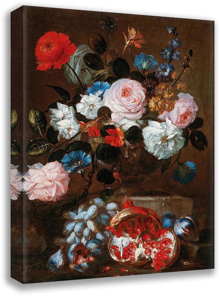 Flowers in a Vase with Grapes and a Pomegranate