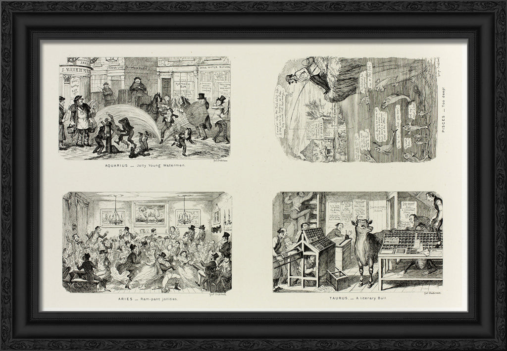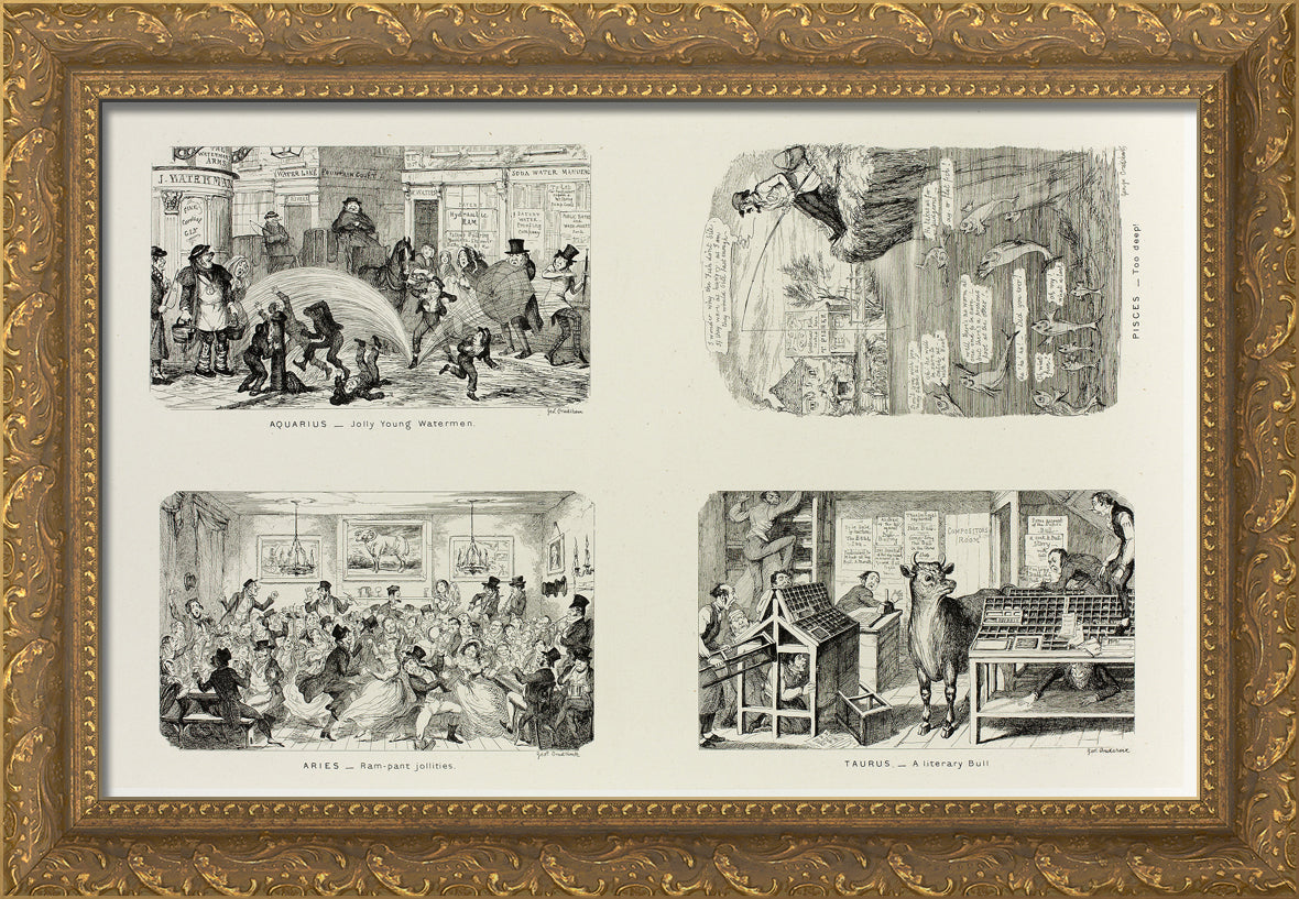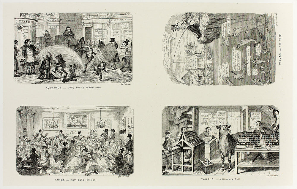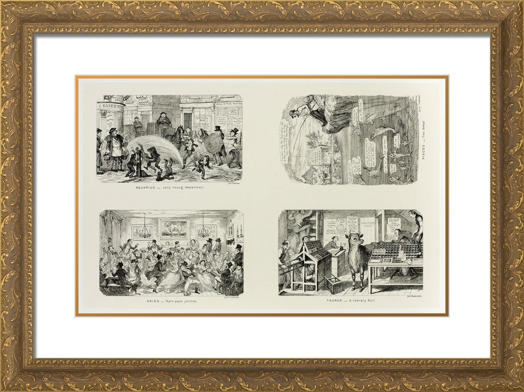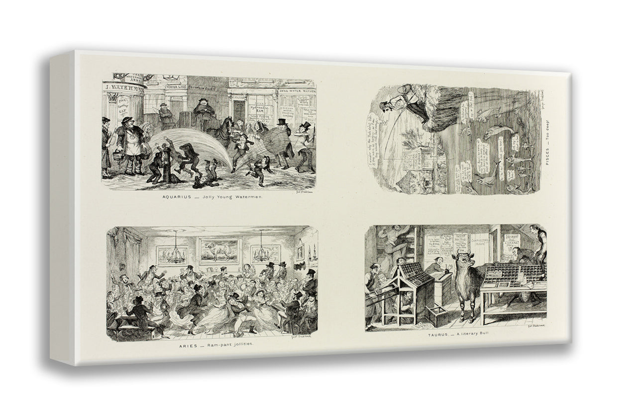 / Aquarius - Jolly Young Watermen from George Cruikshank's Steel Etchings to The Comic Almanacks: 1835-1853 (top left) by George Cruikshank