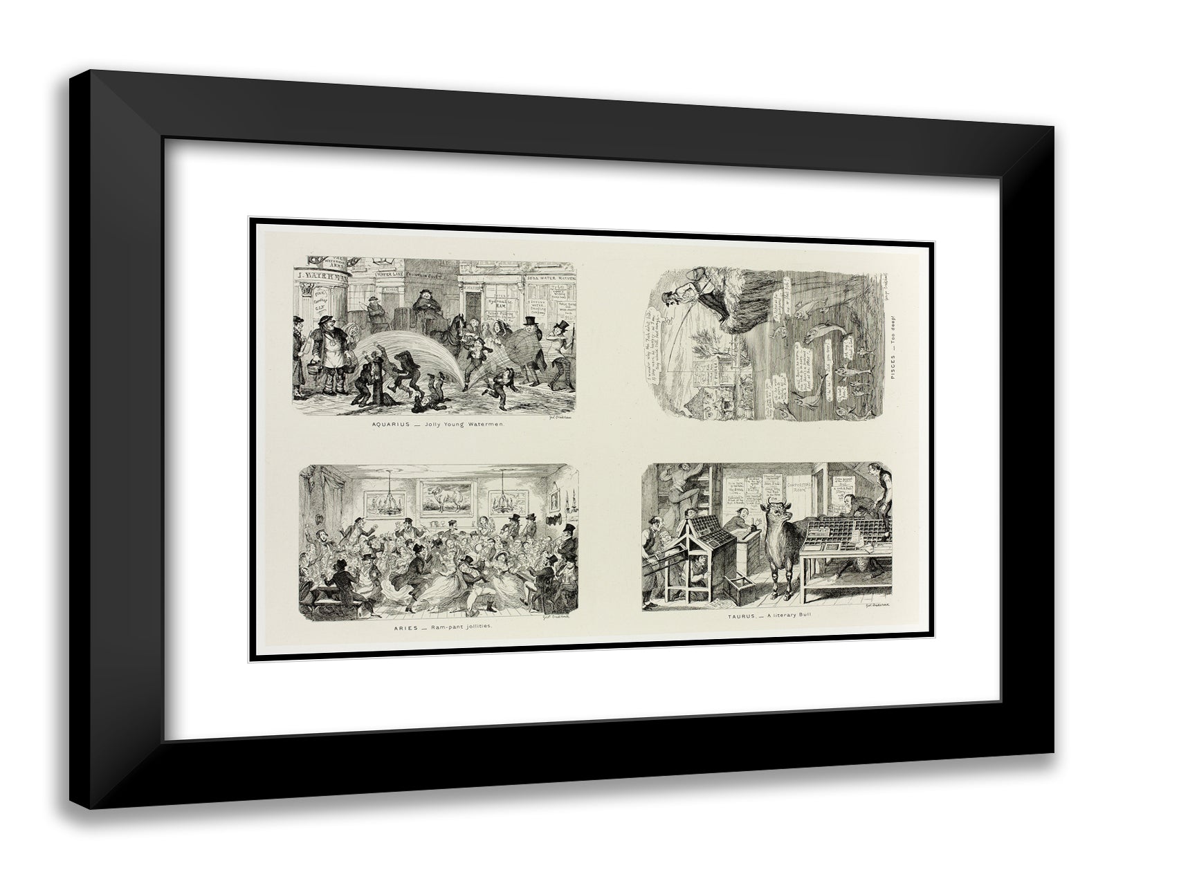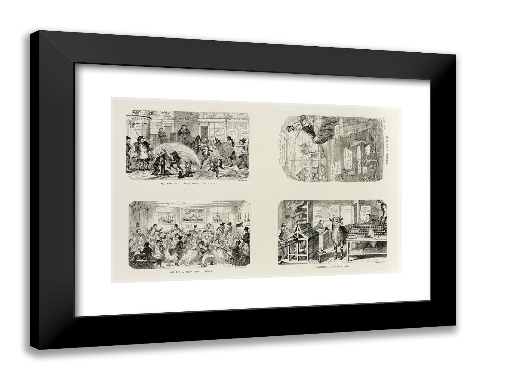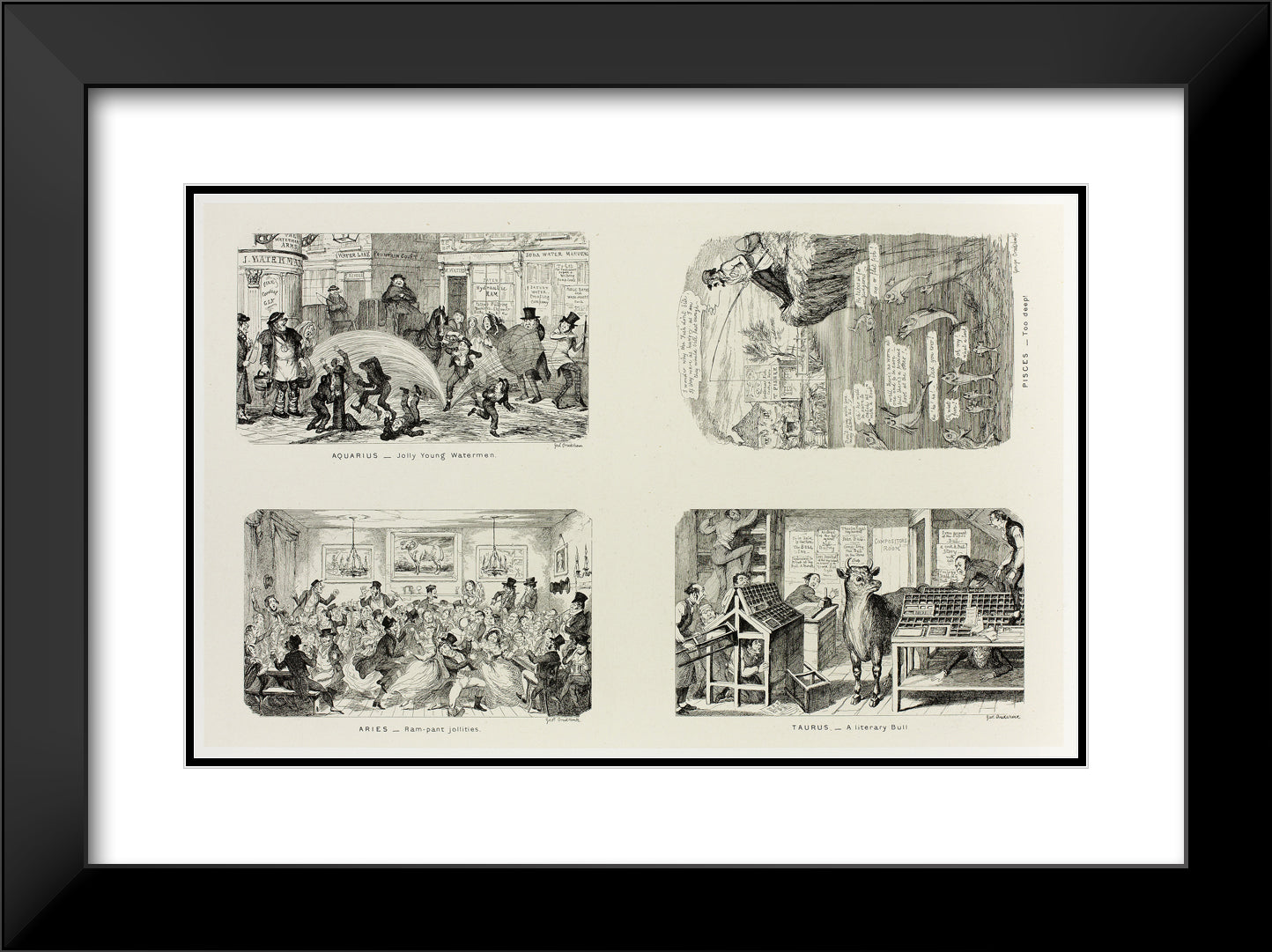 / Aquarius - Jolly Young Watermen from George Cruikshank's Steel Etchings to The Comic Almanacks: 1835-1853 (top left) by George Cruikshank
