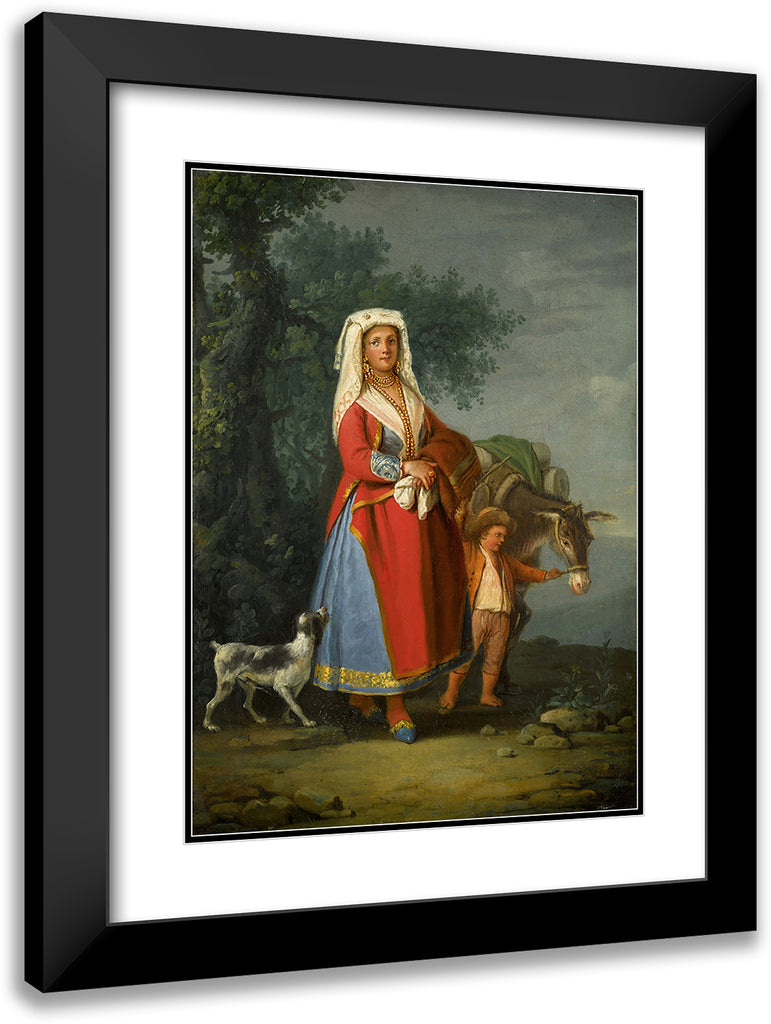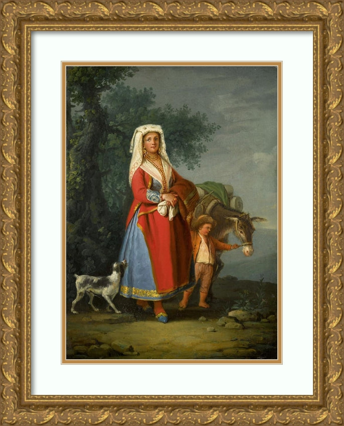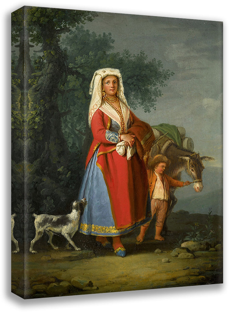 A Young Girl in Traditional Neapolitan Dress in a Landscape, Together with a Young Boy and a Donkey