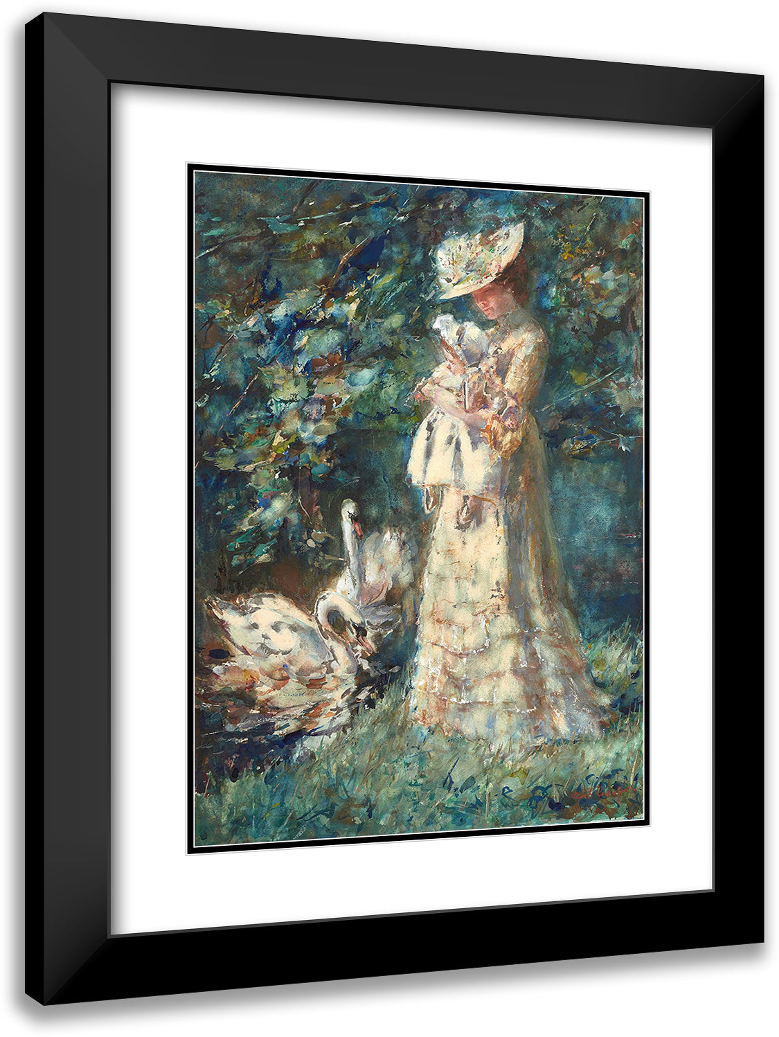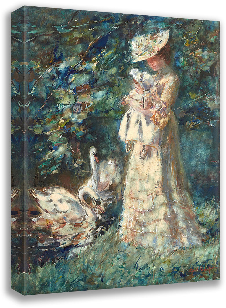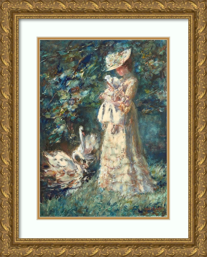 / Feeding the Swans, the Artist's Wife Tjieke and Their Daughter Albertine