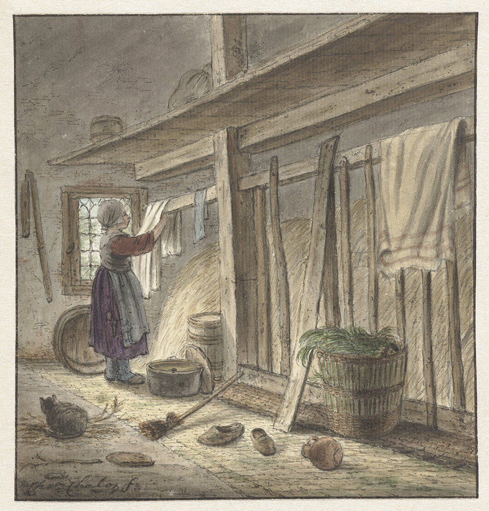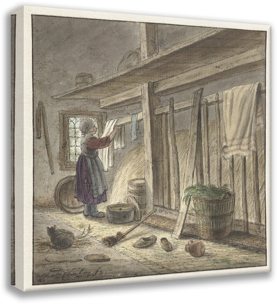 Corner of a Stable with a Girl Hanging a Canvas (1772)