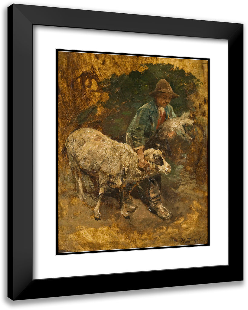 A Shepherd Boy with a Lambkin and a Sheep