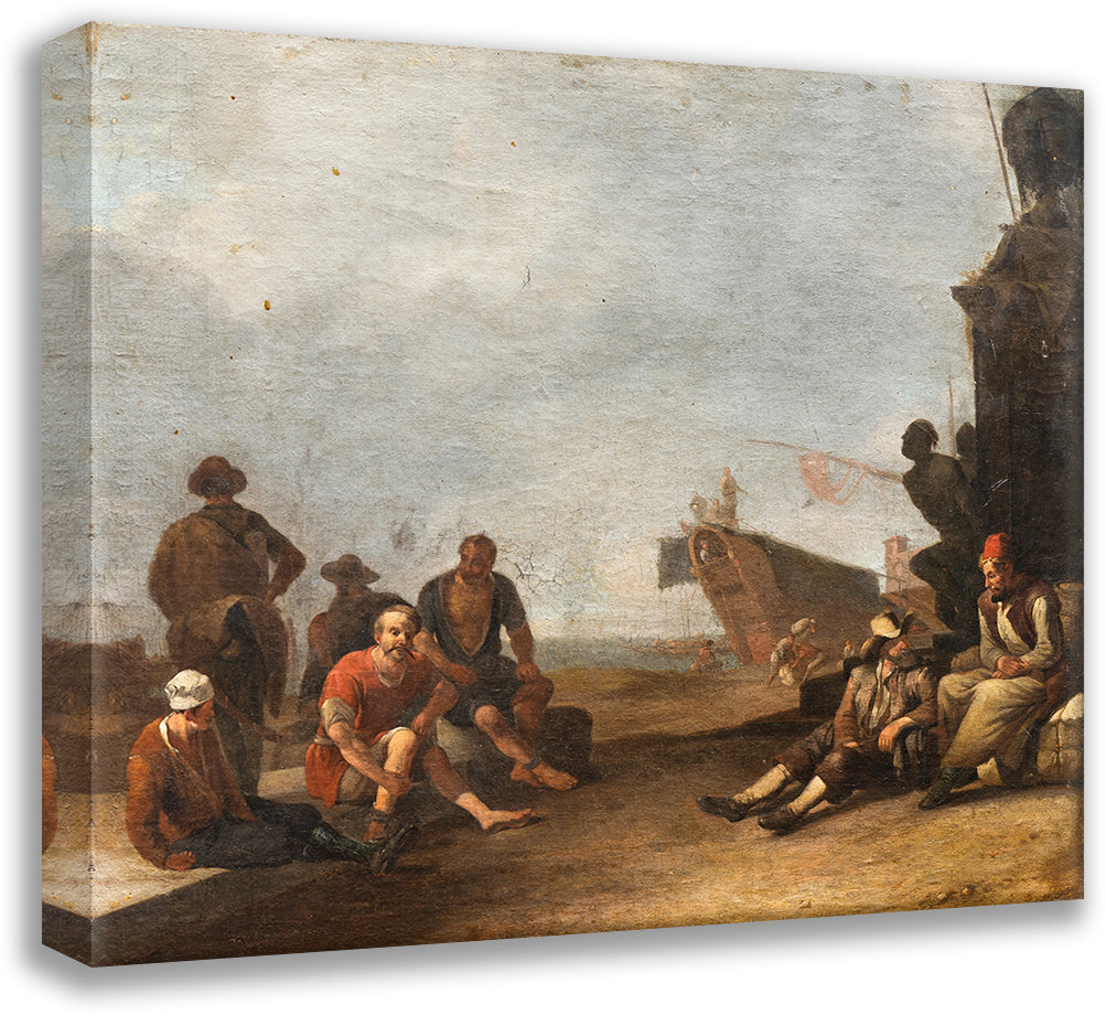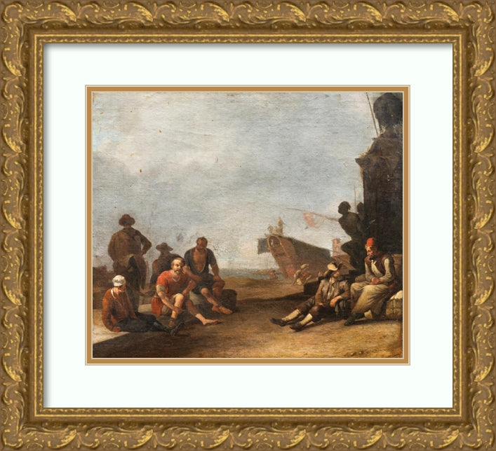 / View on a Sourthern Harbor with Merchants and Prisoners, a Ship and the Statue of Ferdinand I De’ Medici in Livorno