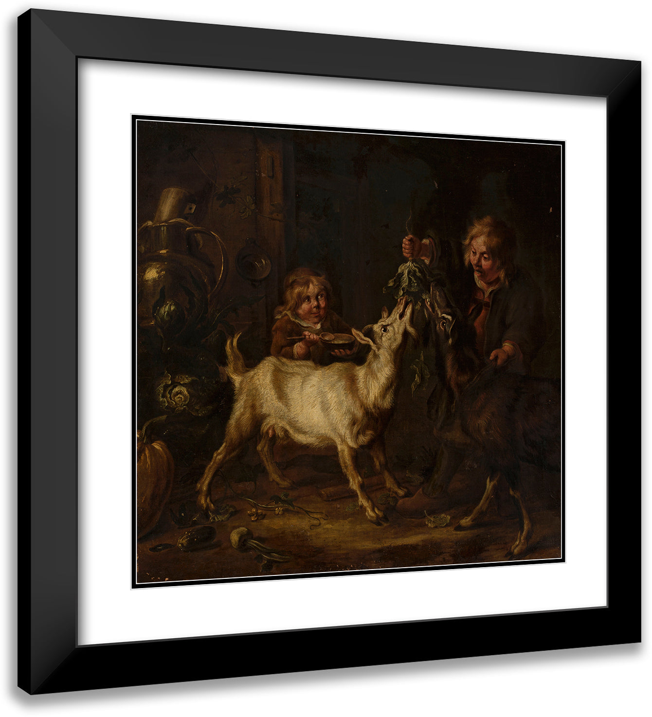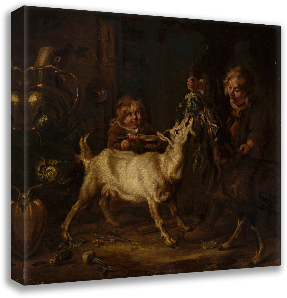 Children Feeding Goats