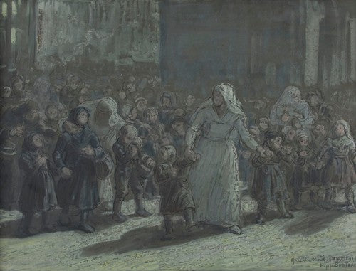Arrival at the Gare Du Nord in 1914. Nurse Leading Children
