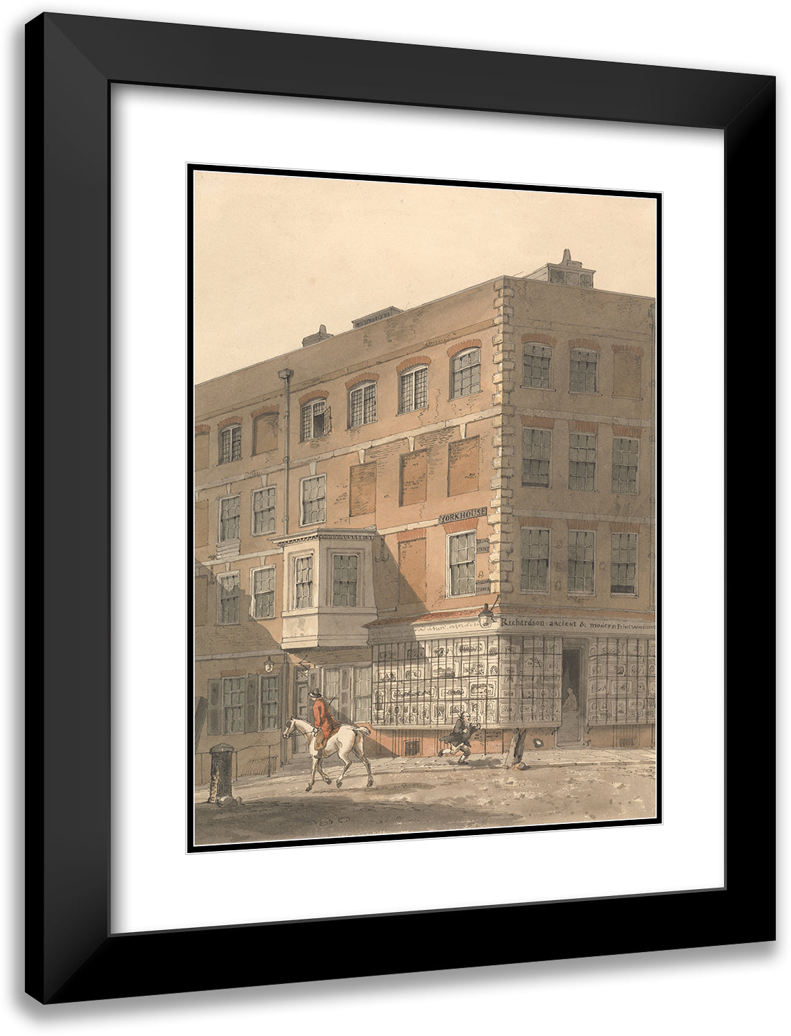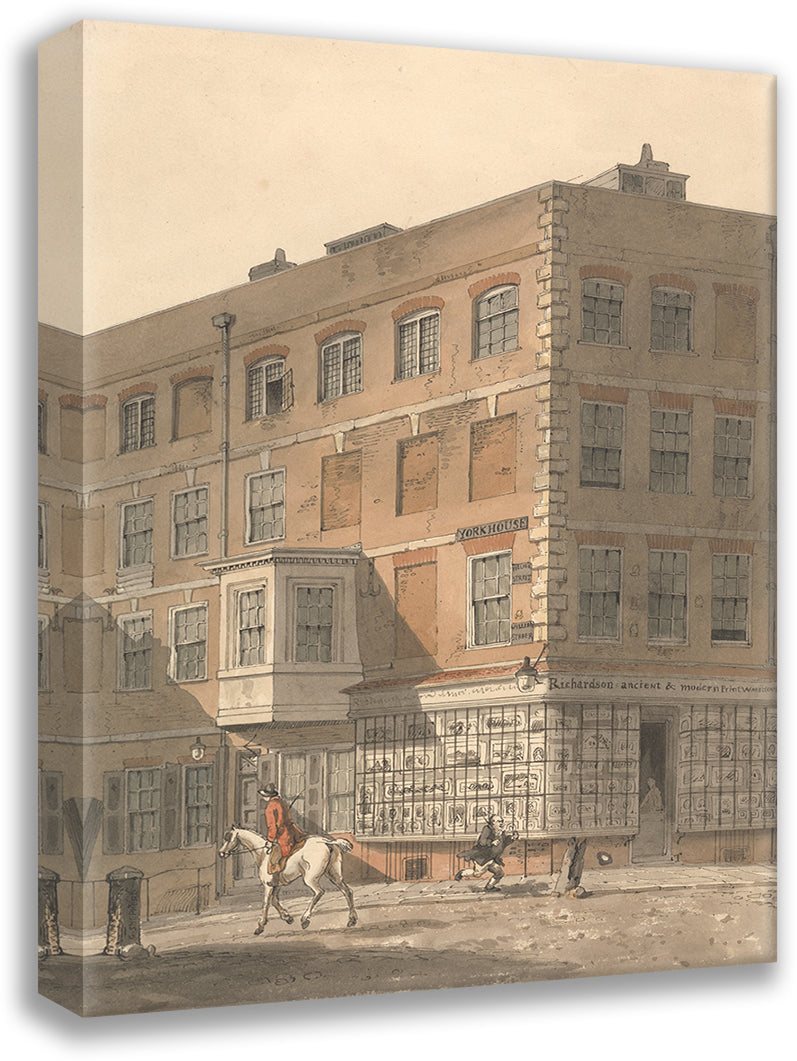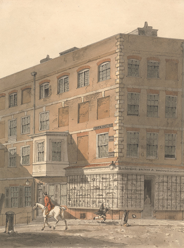/ York House, the Corner of Villiers Street and the Strand, with Richardson's Ancient and Modern Print Warehouse in the Foreground (ca 1809)