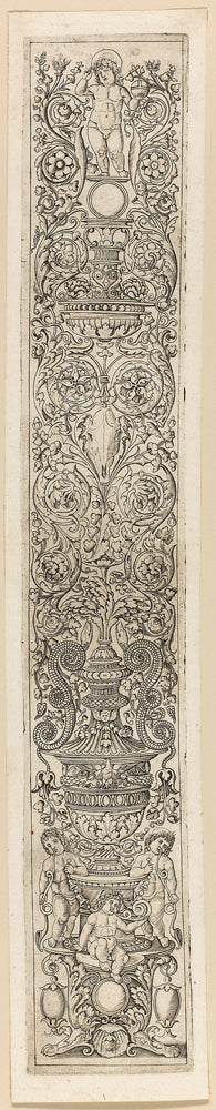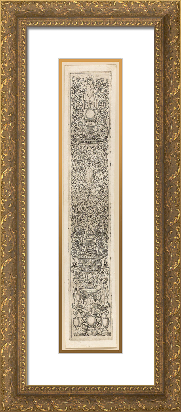 / Three Children Blowing Horns, plate eight of Twelve Ornament Panels by Giovan Pietro Birago