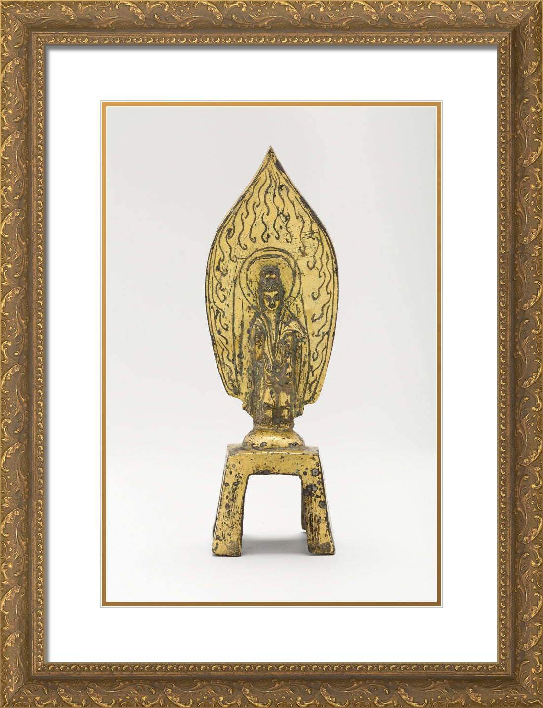 / Guanyin (Avalokiteshvara) Standing before Flaming Aureole and Holding a Water Bottle by Artist Unknown