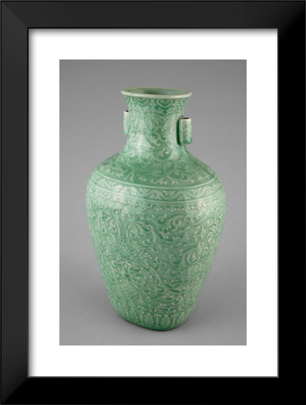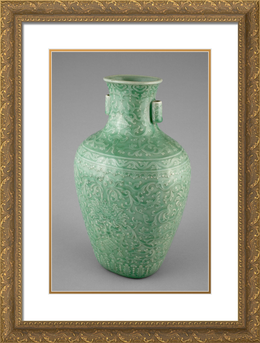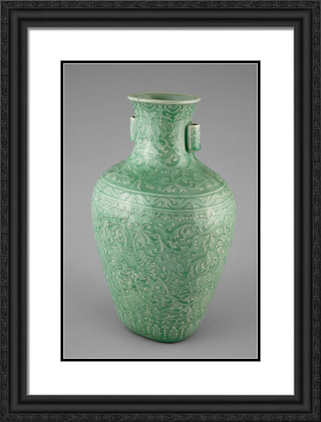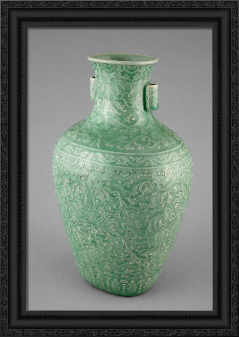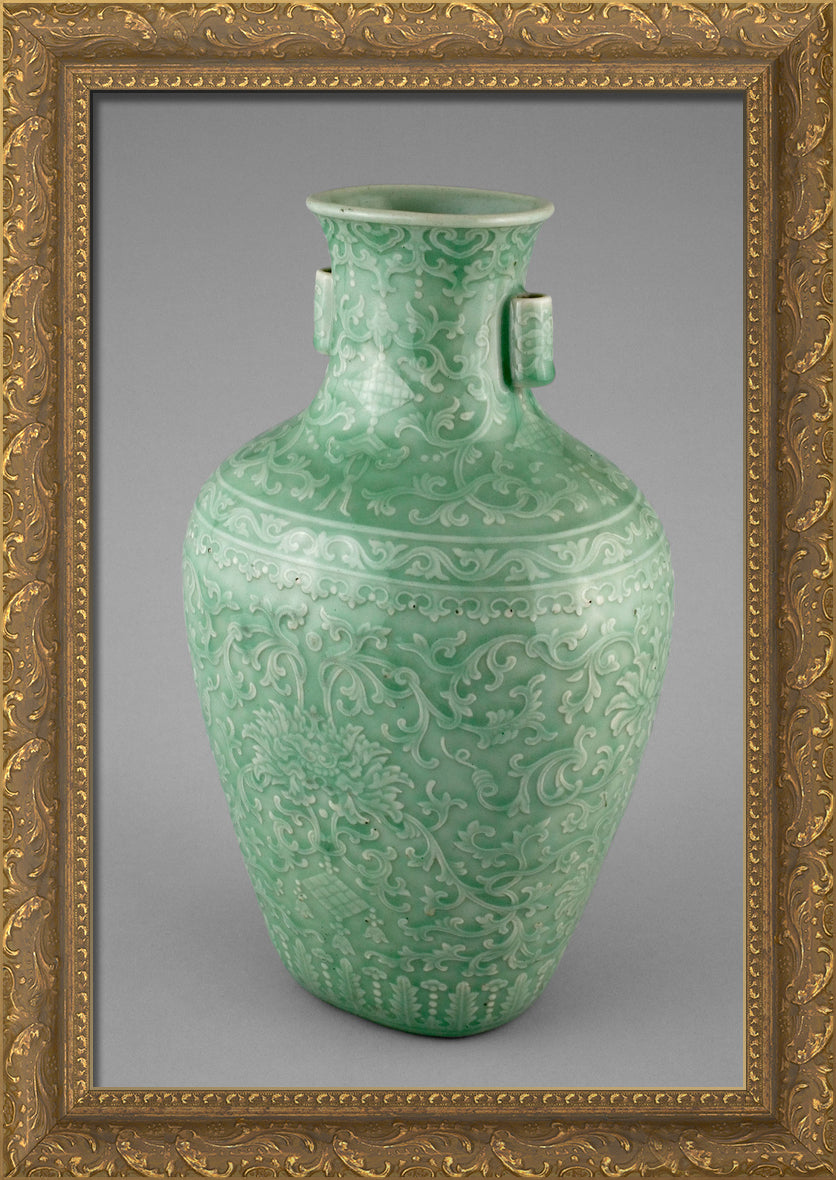 / Jar with Tubular Handles, Peonies, Endless Knot, Pendant Balls, and Pendant Lozenges by Artist Unknown