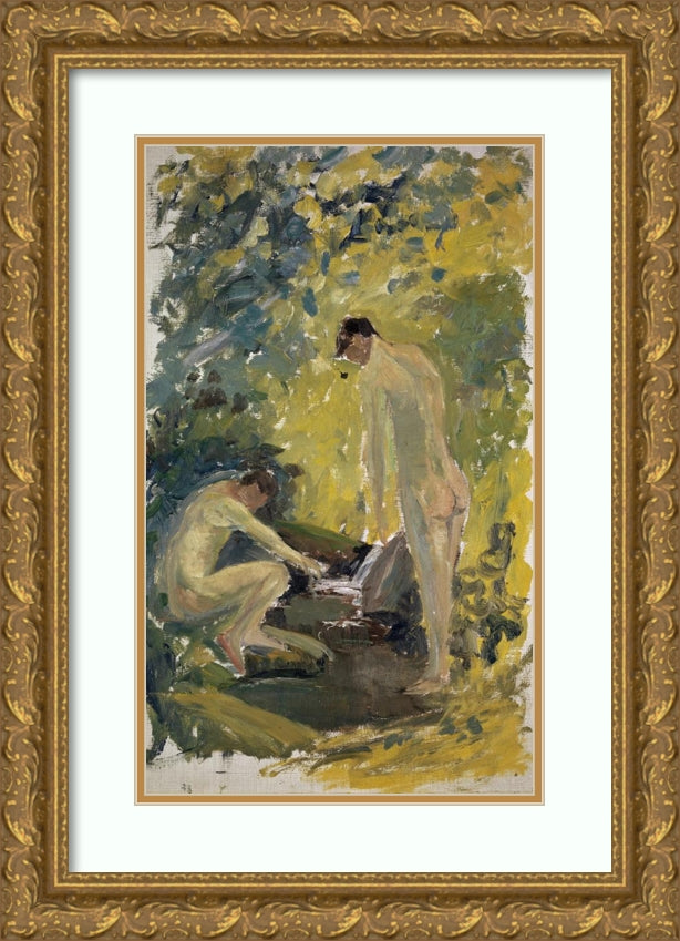 Two Nude Young Men in a River in the Woods