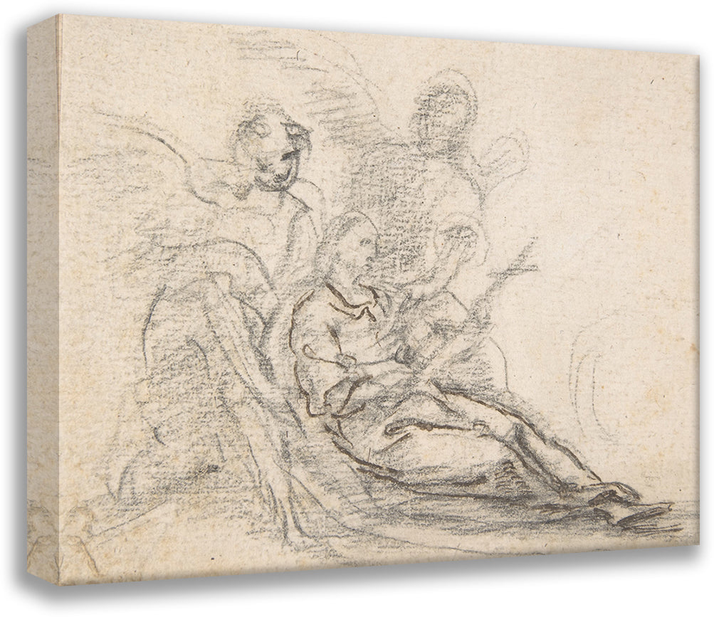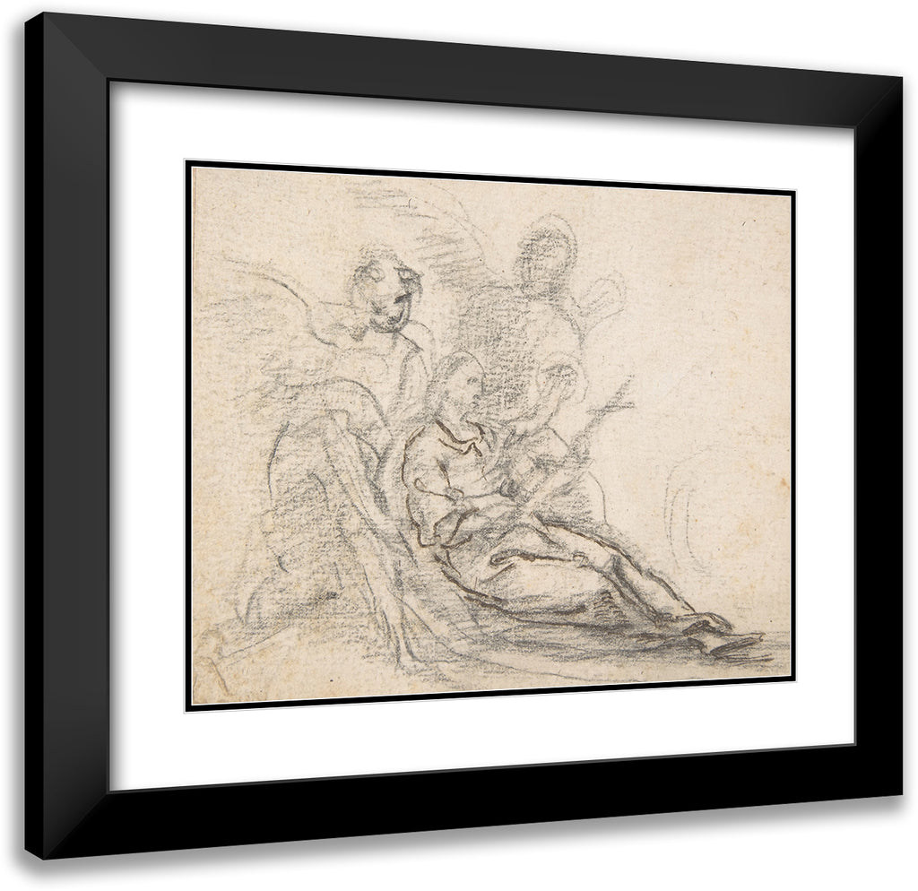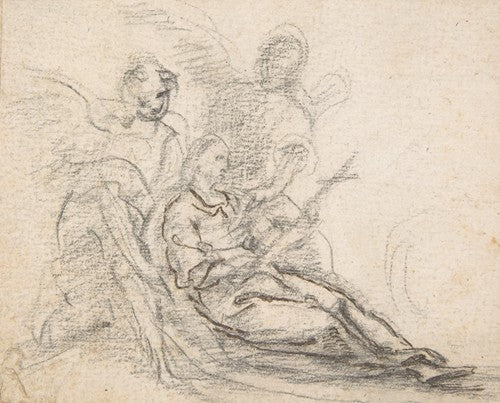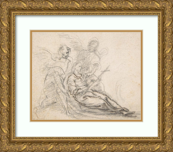 / Reclining Figure of Saint Holding Cross, Supported by Two Angels (1700-1750)