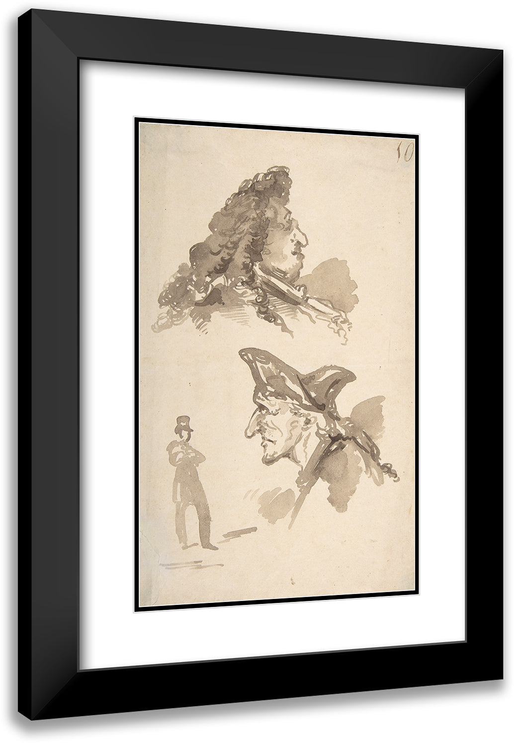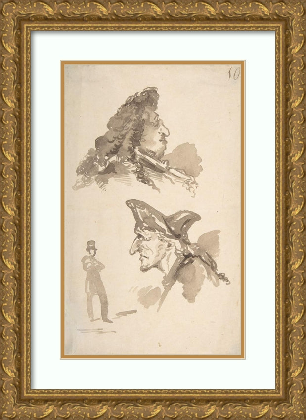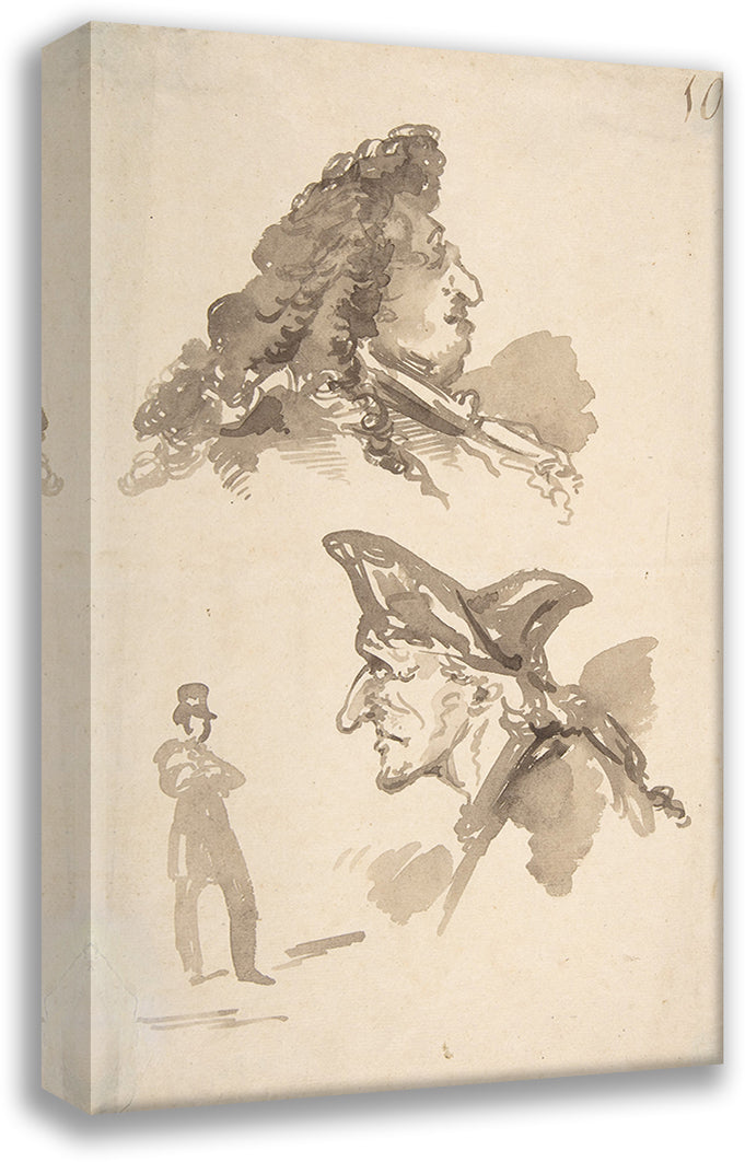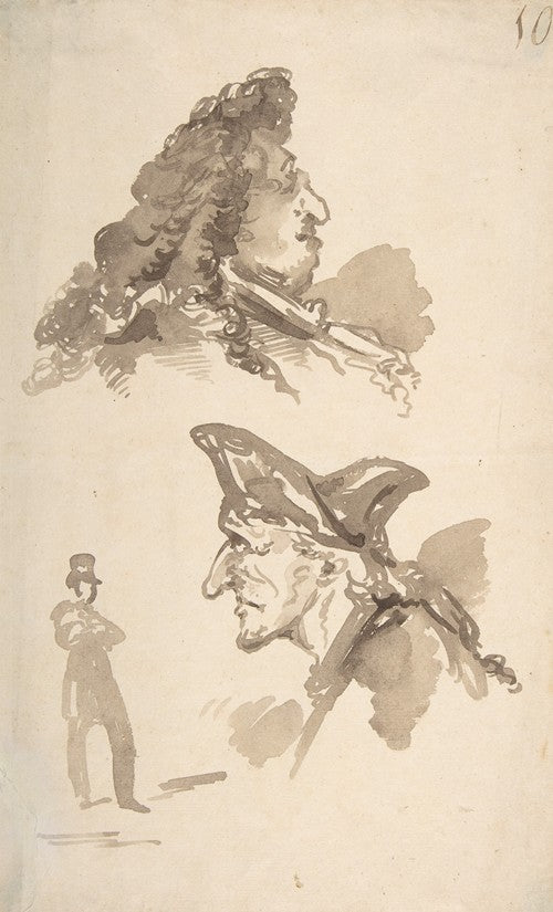 / Two Male Heads in Profile and Standing Man (Late 18th-Mid-19th Century)
