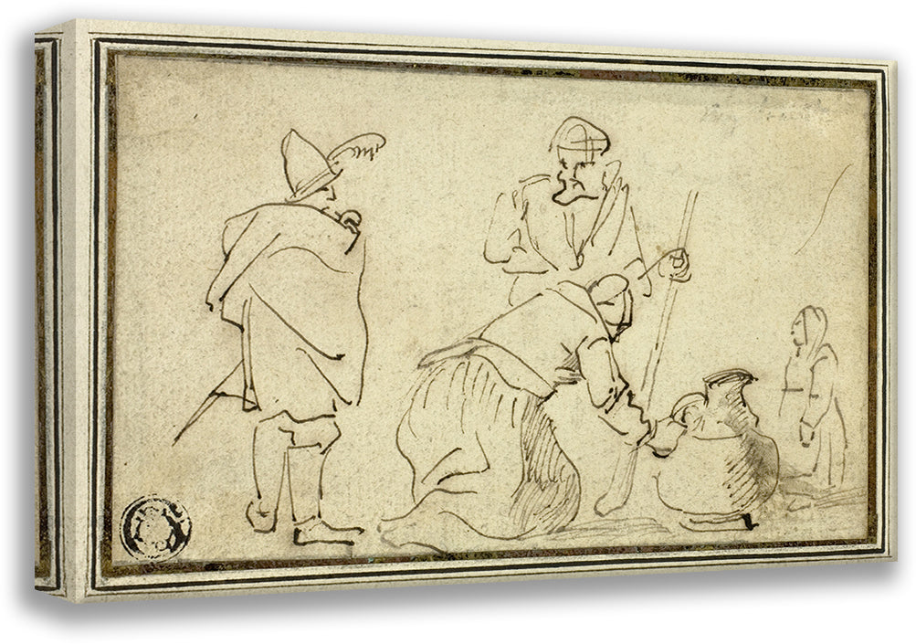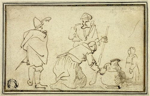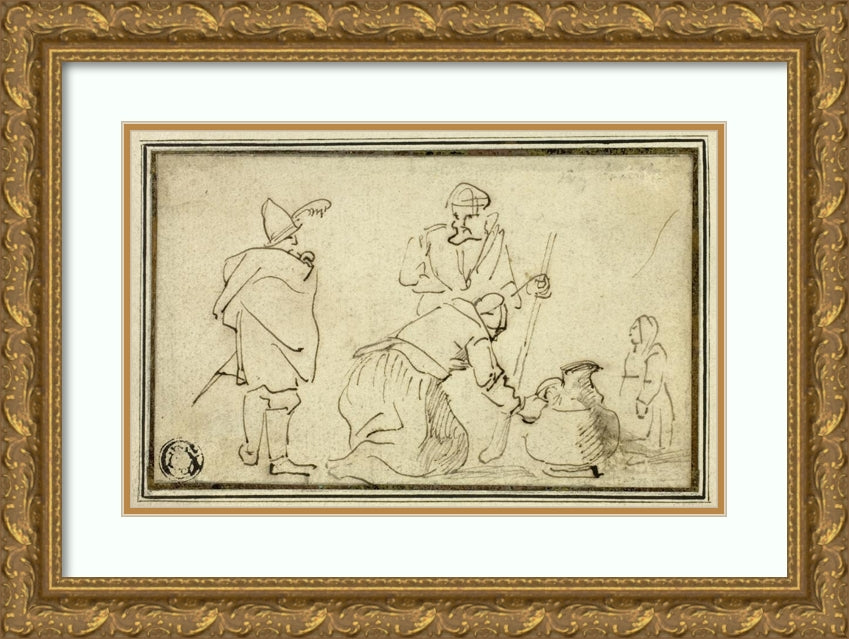 Two Soldiers, Woman with Jug and Child