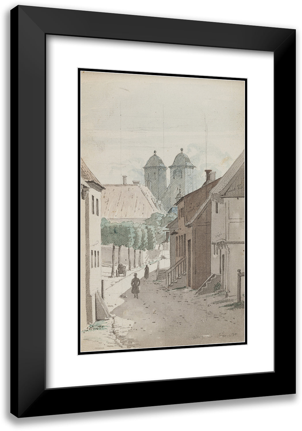 / A Look Down a Strait Towards Viborg Cathedral's Two Towers (1829 - 1832)