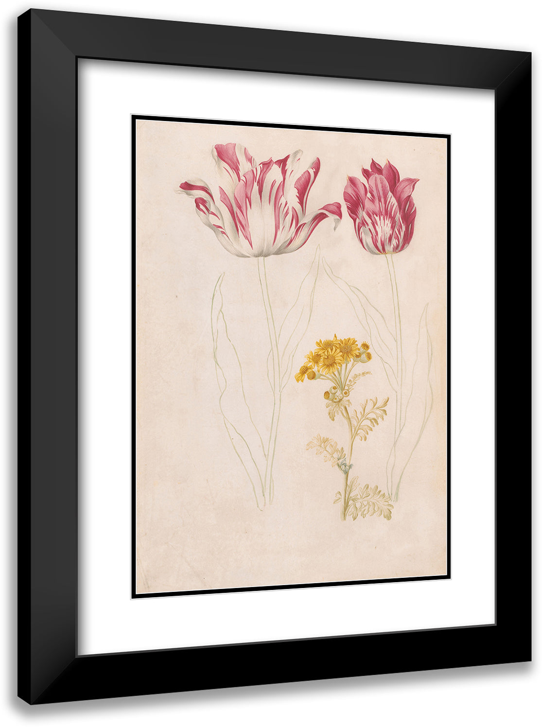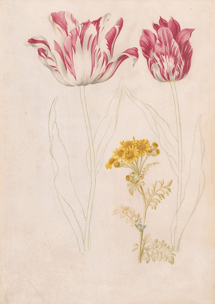 Two Tulips and a Branch with Yellow Flowers (1624 - 1681)