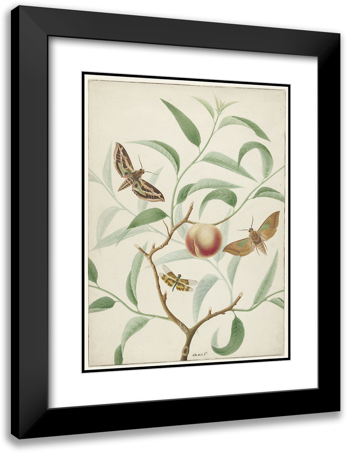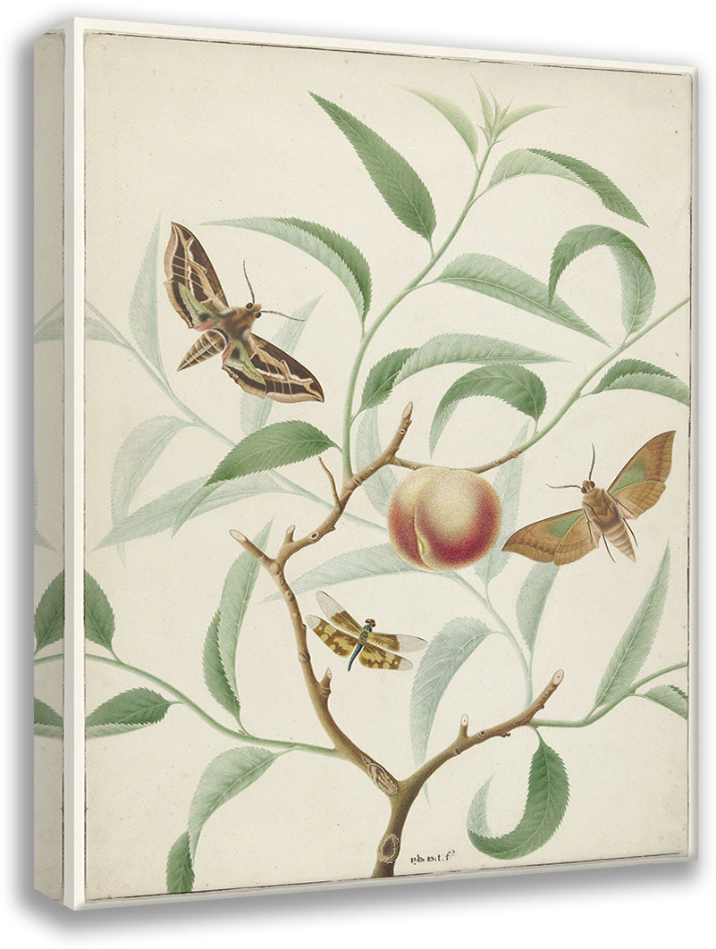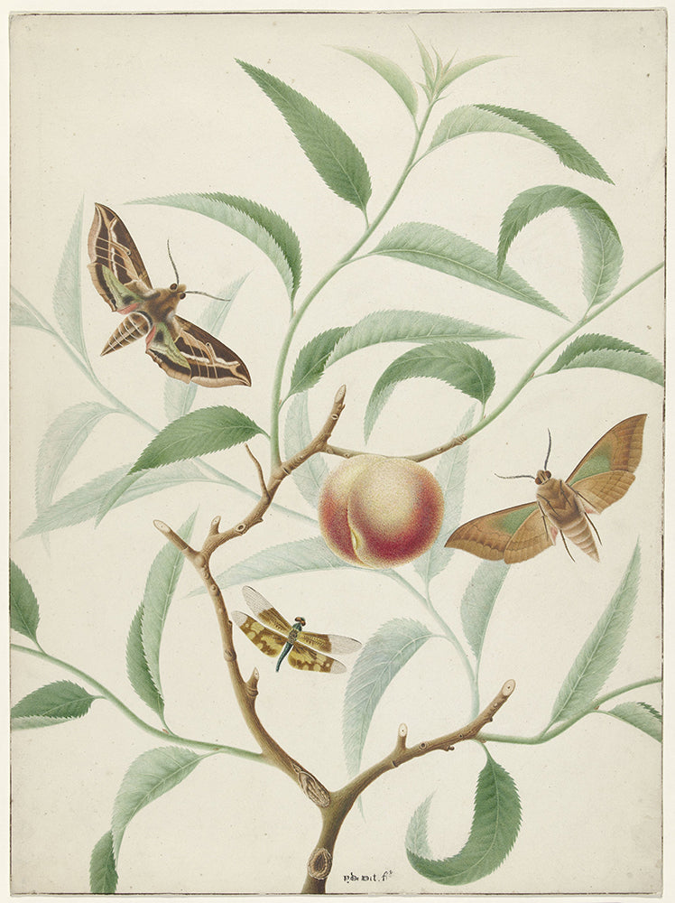 Peach on a Branch with Two Exotic Butterflies and a Dragonfly (1774)