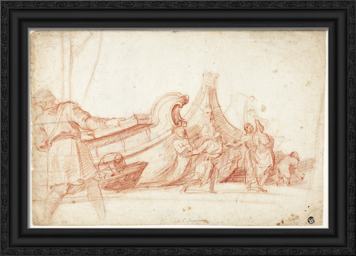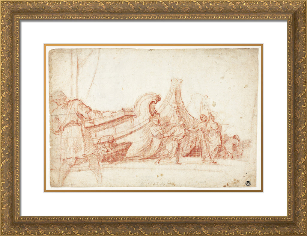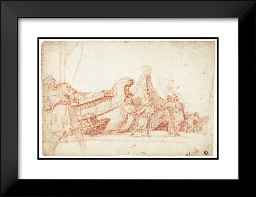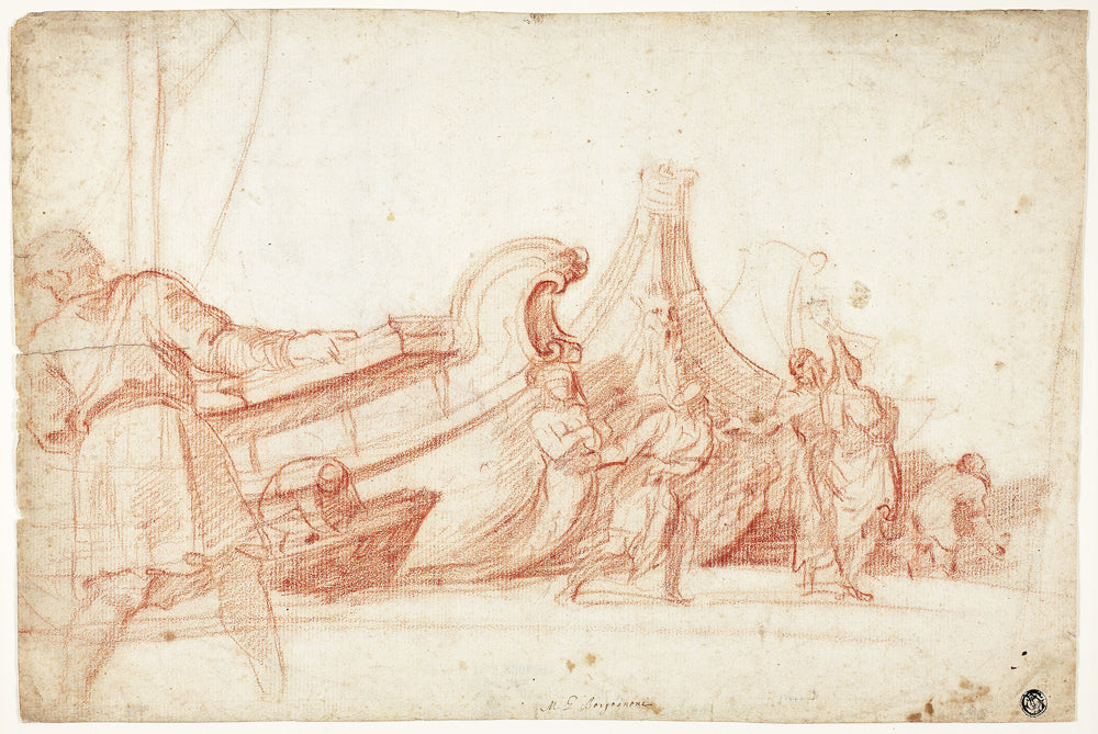 / Dock Scene (recto); Two Sketches of Male Figures (verso) by Guillaume Courtois