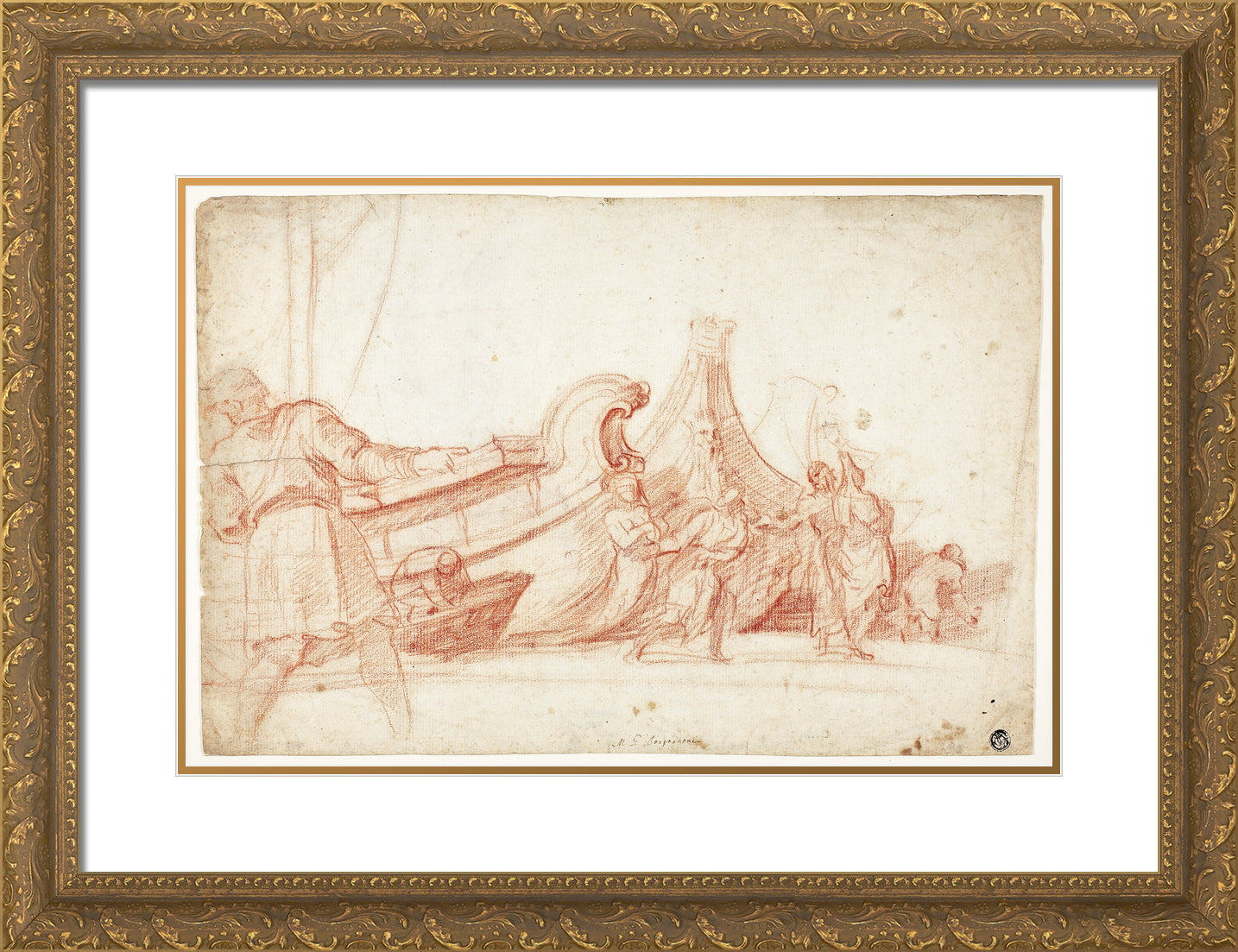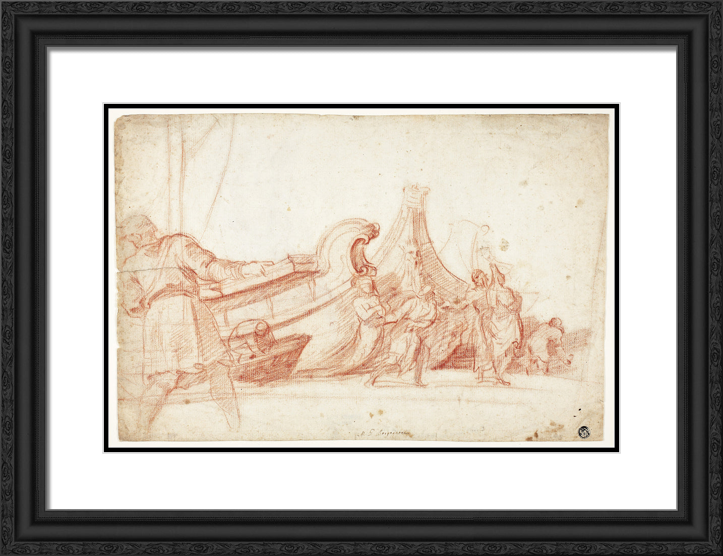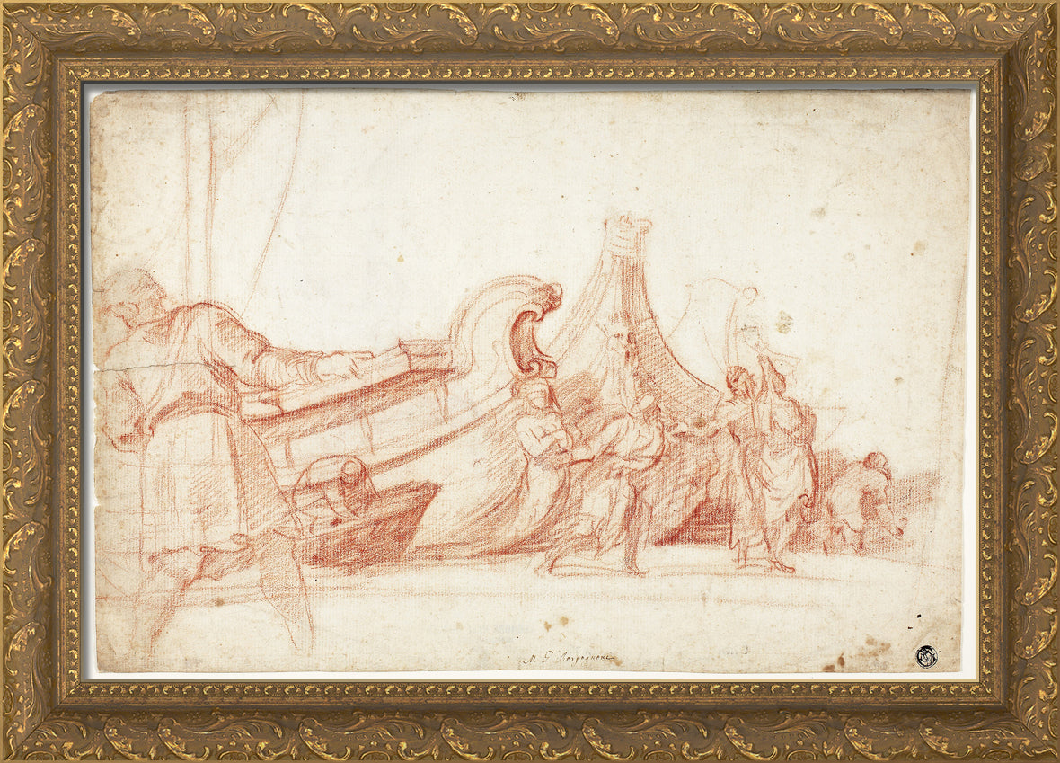 / Dock Scene (recto); Two Sketches of Male Figures (verso) by Guillaume Courtois
