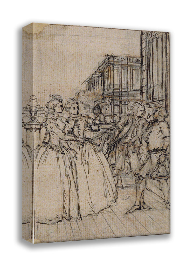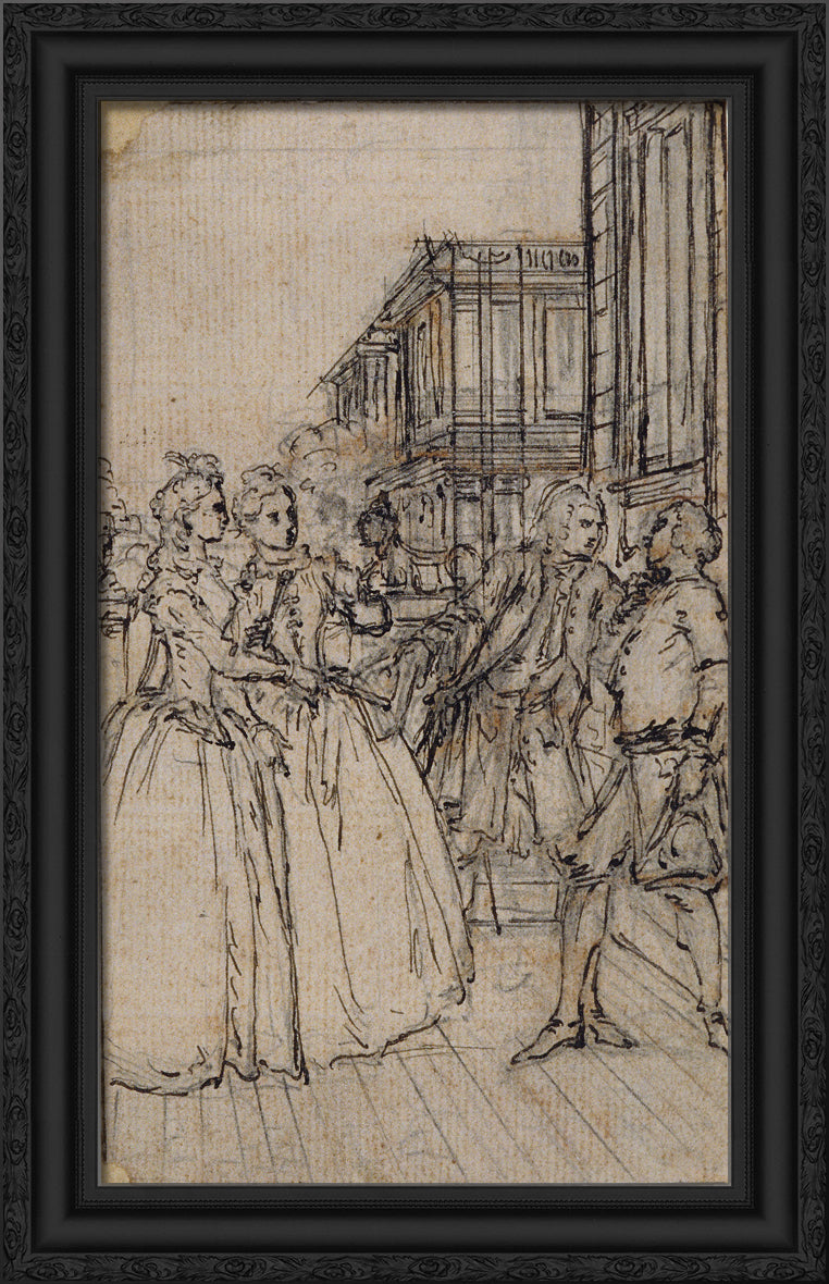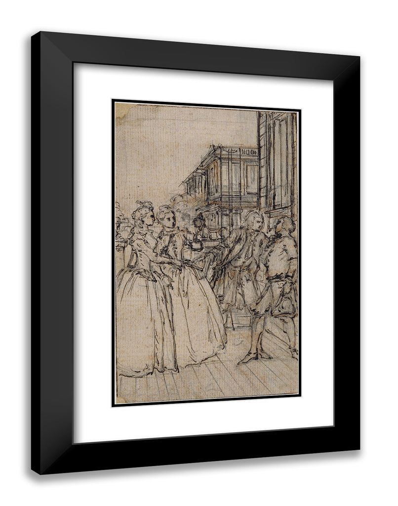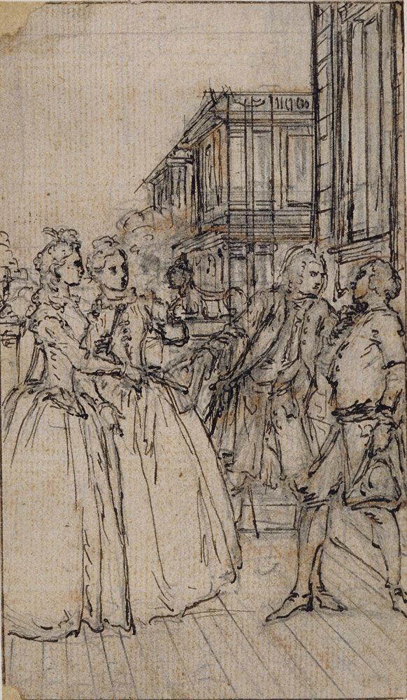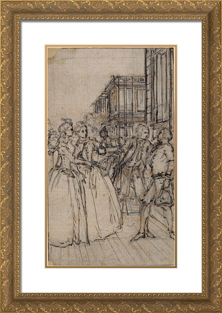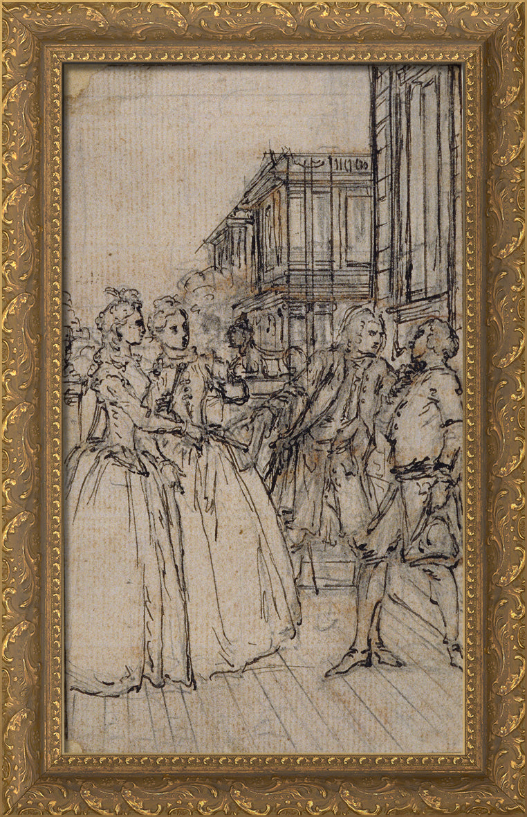 / Literary Illustration with Two Ladies and Two Gentlemen in a Street by Hubert Francois Gravelot