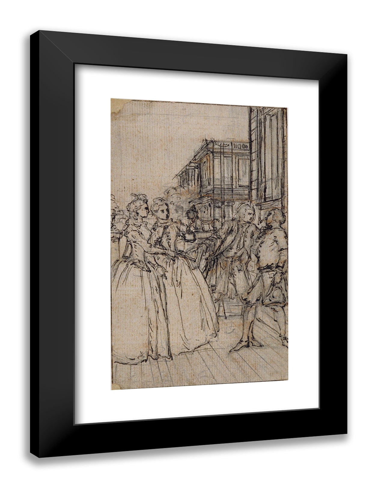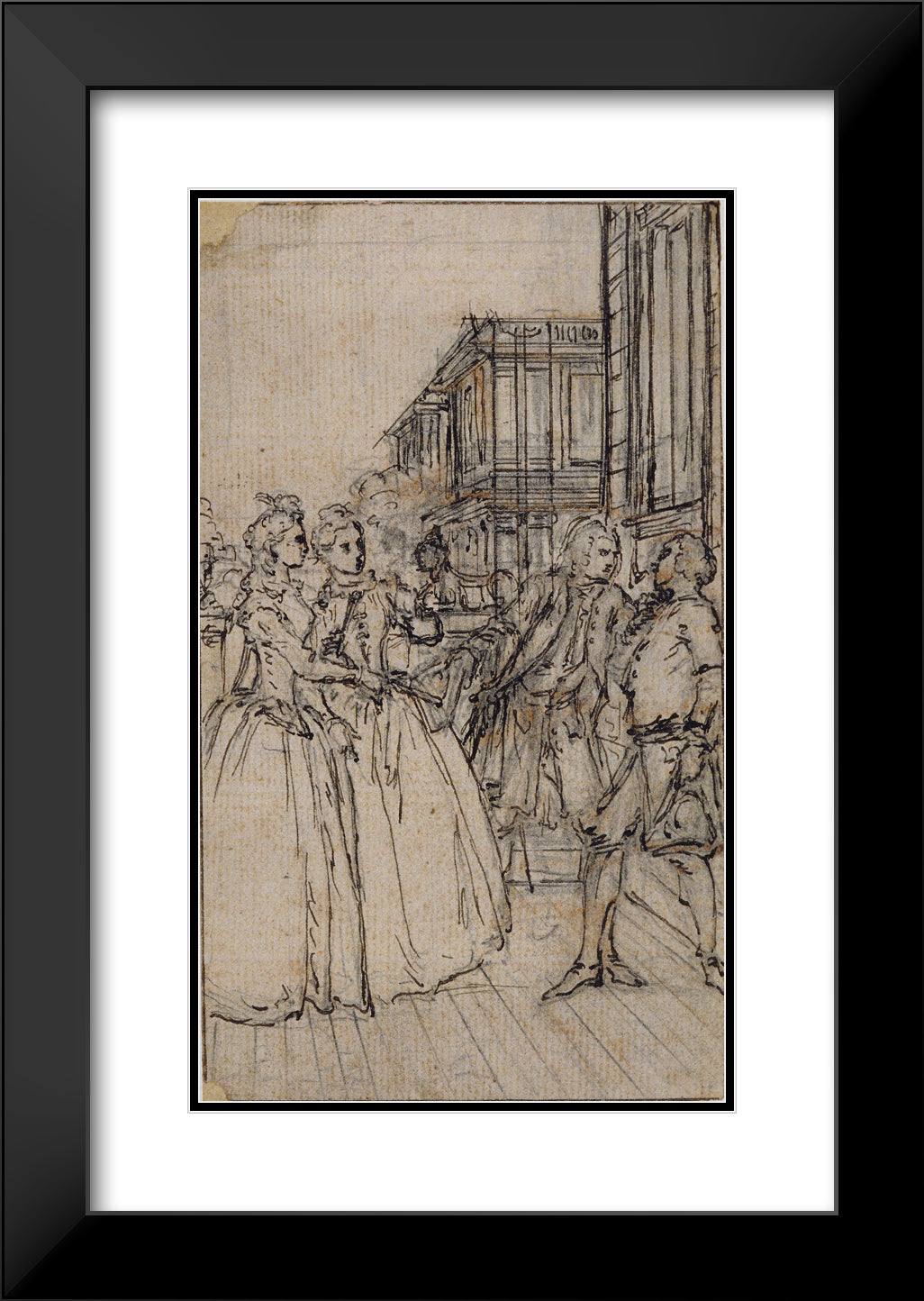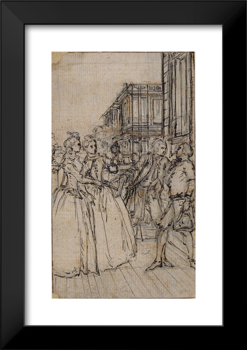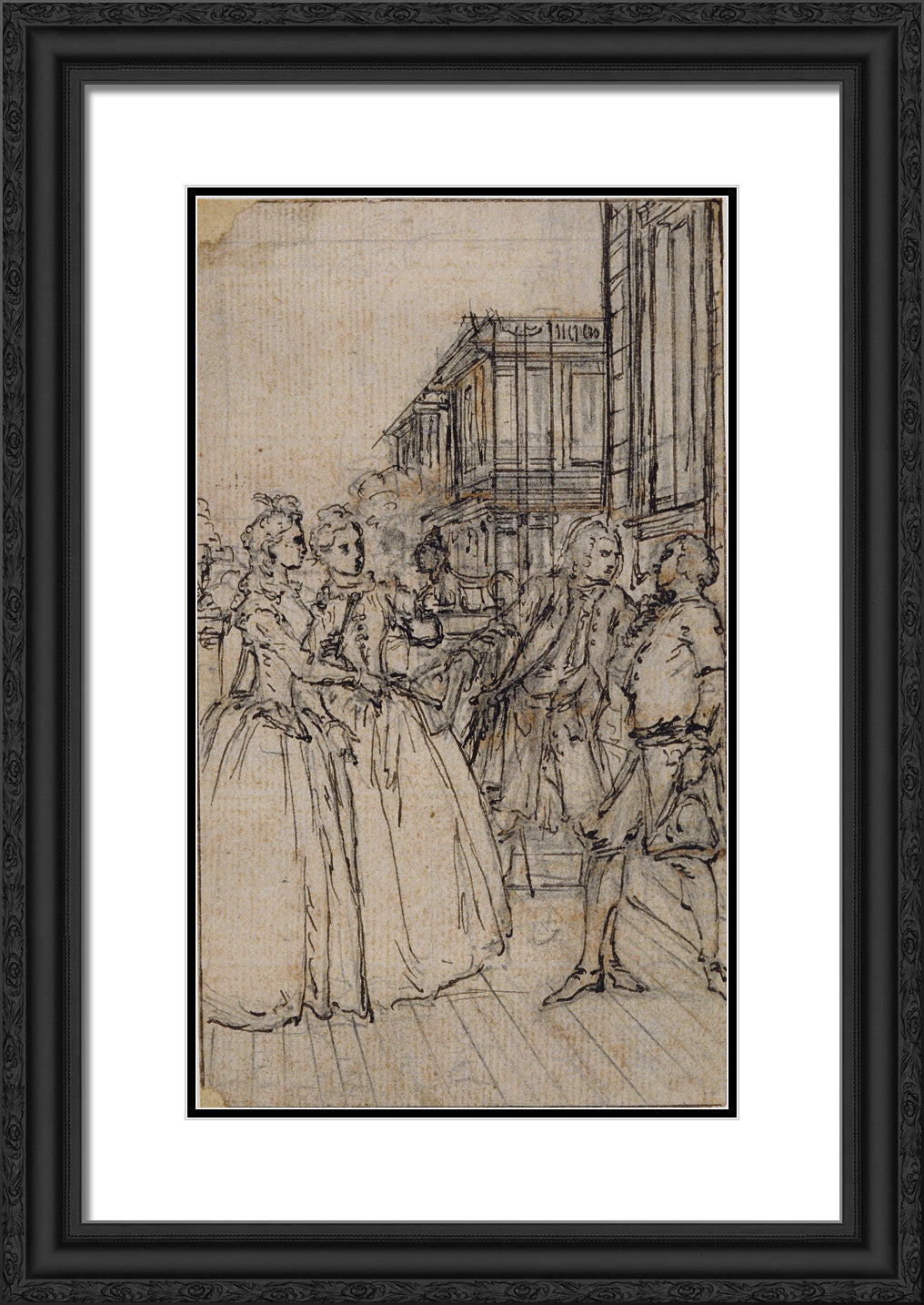 / Literary Illustration with Two Ladies and Two Gentlemen in a Street by Hubert Francois Gravelot