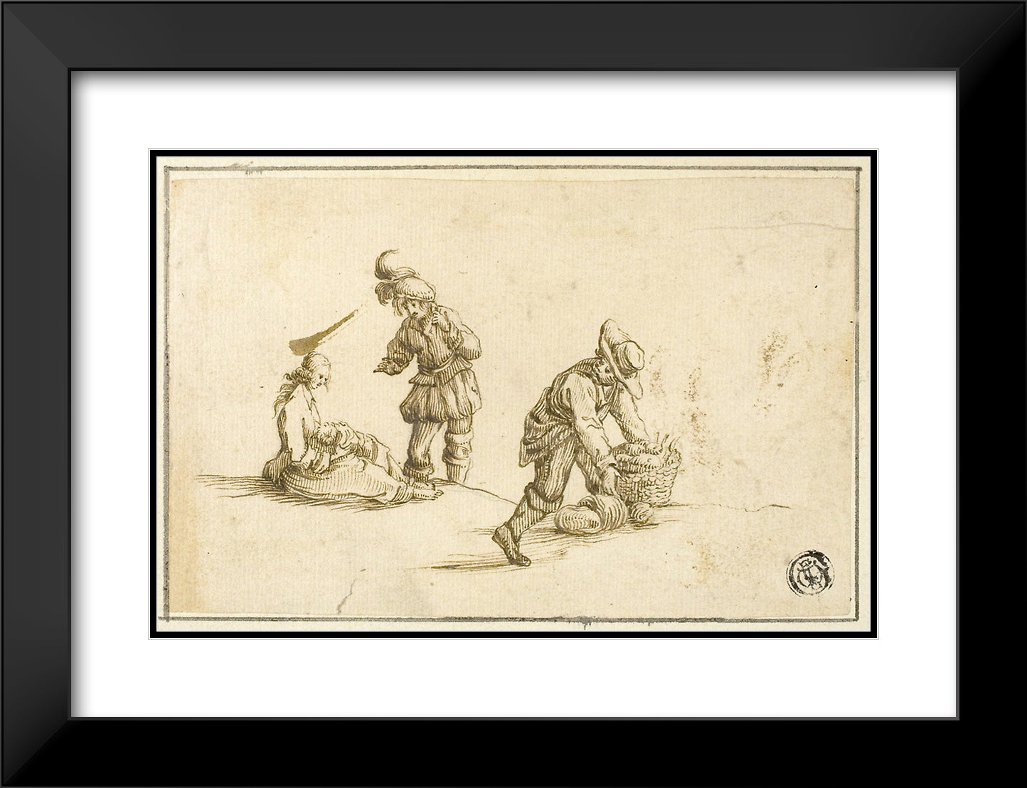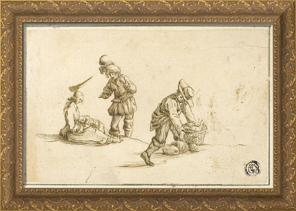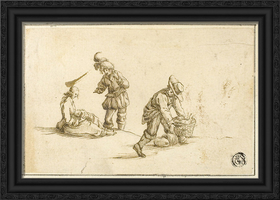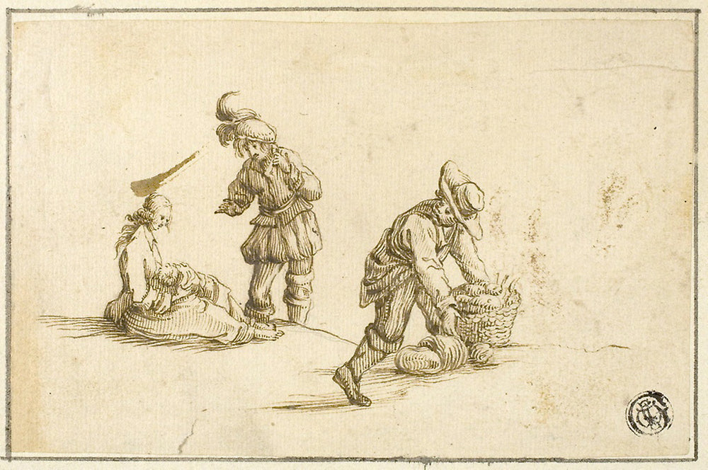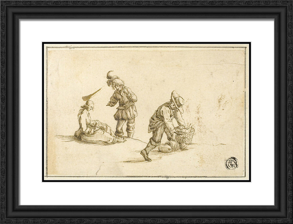 / Resting Mother and Child, and Two Men, One Lifting Basket by Stefano della Bella