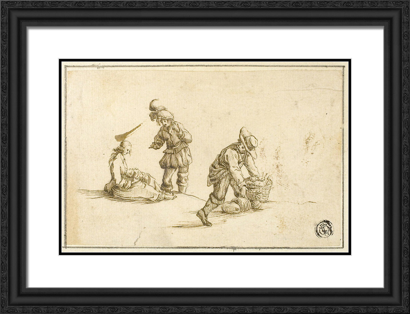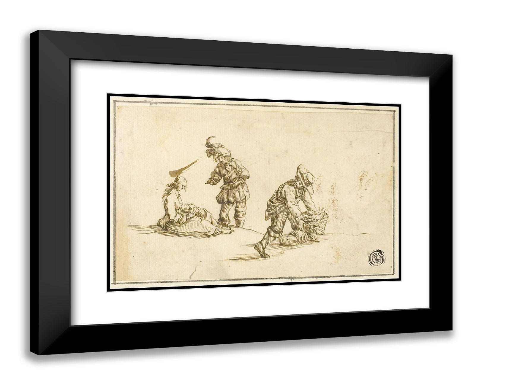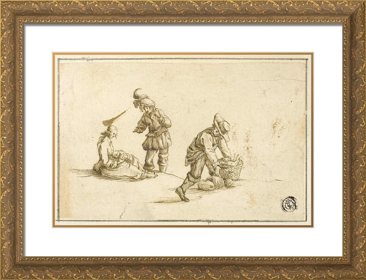 / Resting Mother and Child, and Two Men, One Lifting Basket by Stefano della Bella