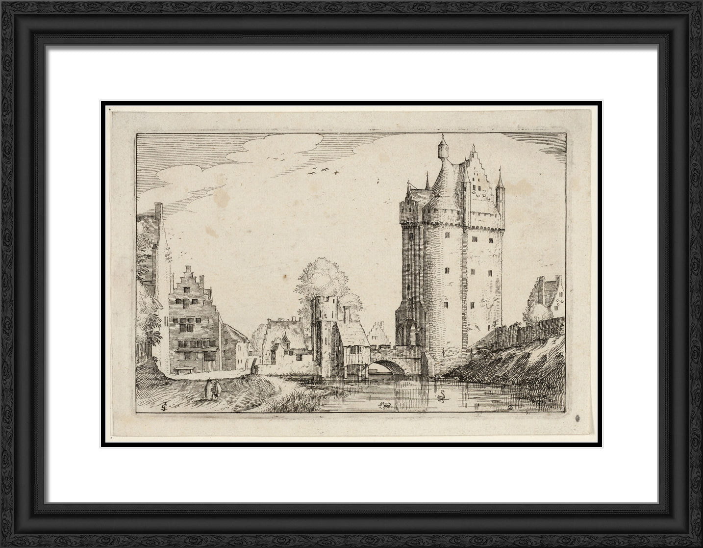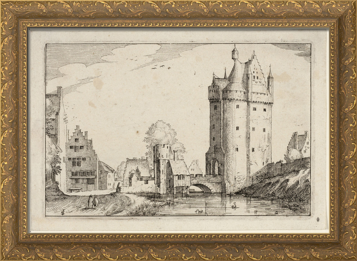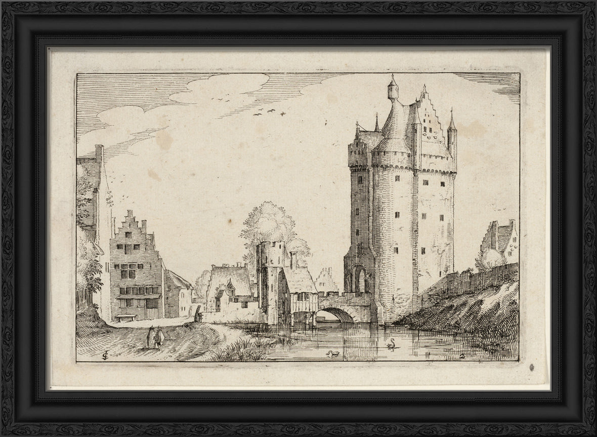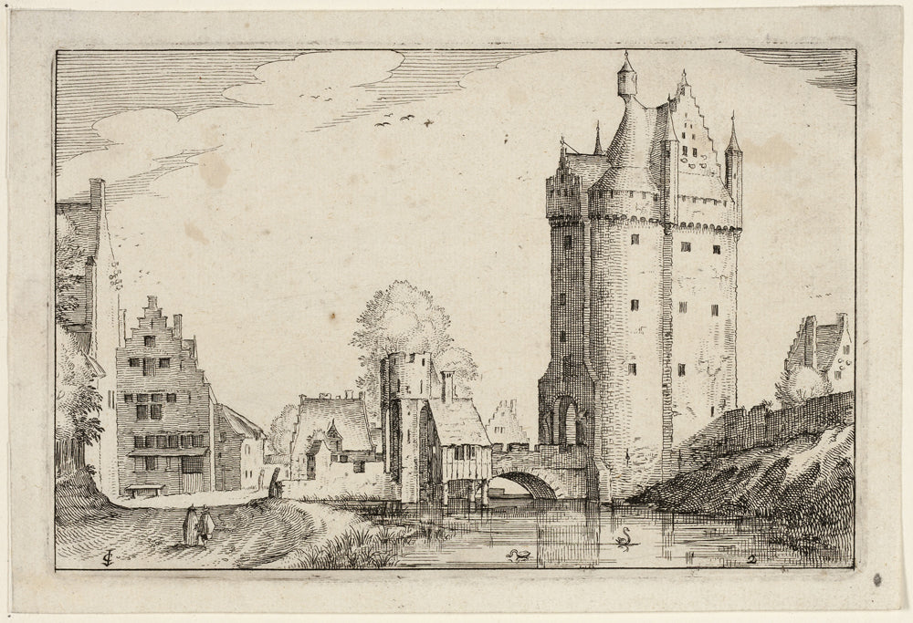 / Town Gate, plate two after Pictures of Farms, Country Houses and Rustic Villages (Praediorum villarum et rusticarum casularum icones) by Claes Jansz. Visscher, II