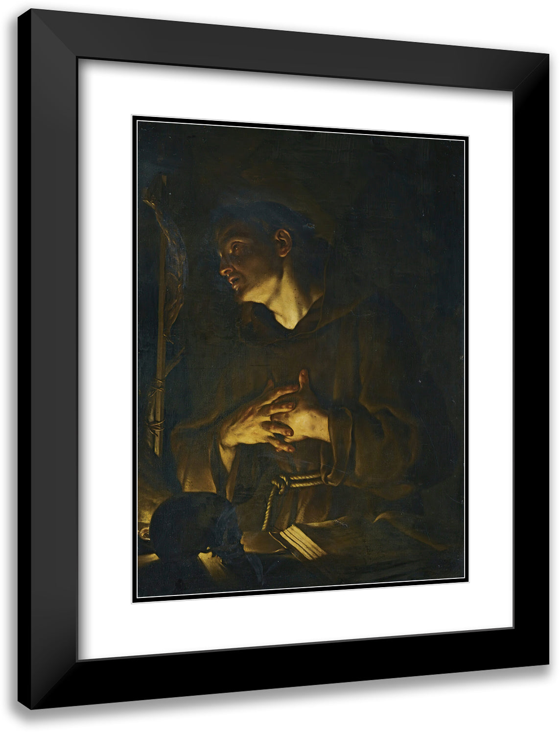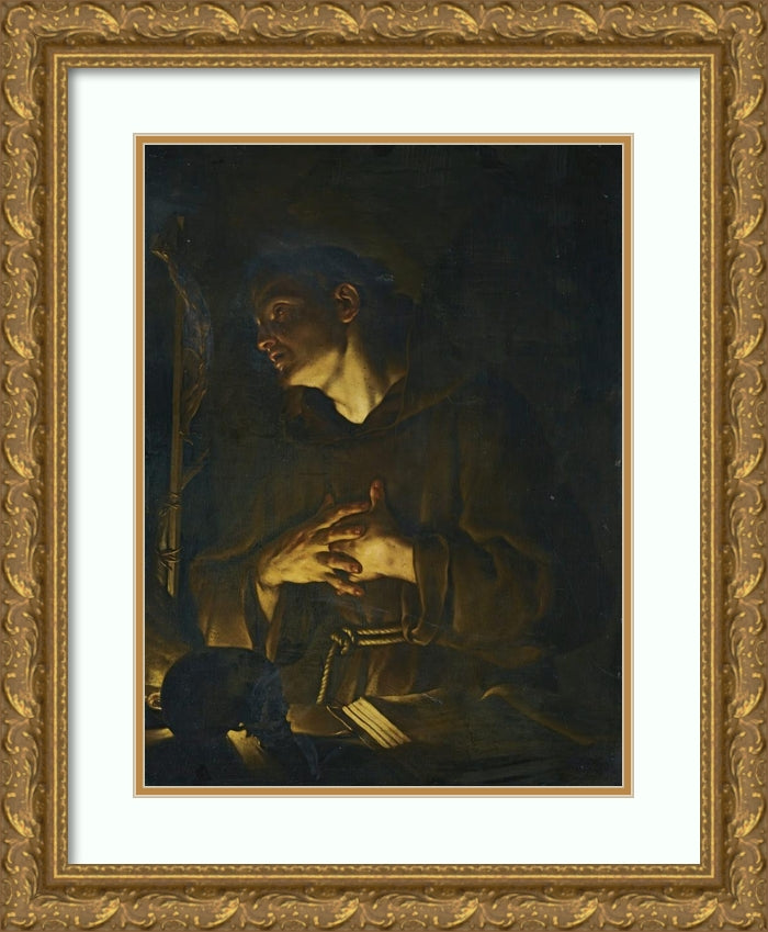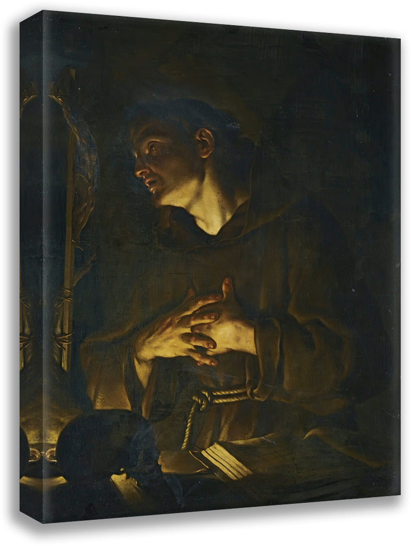 Saint Francis Praying Before a Crucifix by Candlelight