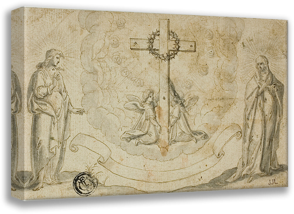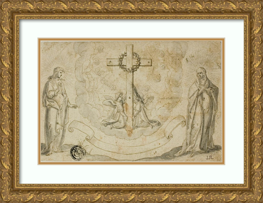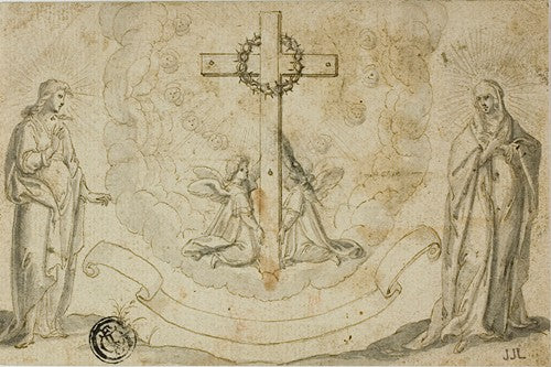 / Virgin Mary and St. John the Evangelist Beholding a Vision of the Cross Held by Two Angels
