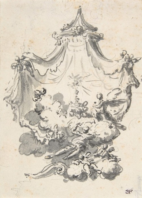 / Parted Curtains Revealing Angels Upon Clouds Worshipping a Monstrance (1698-1765)