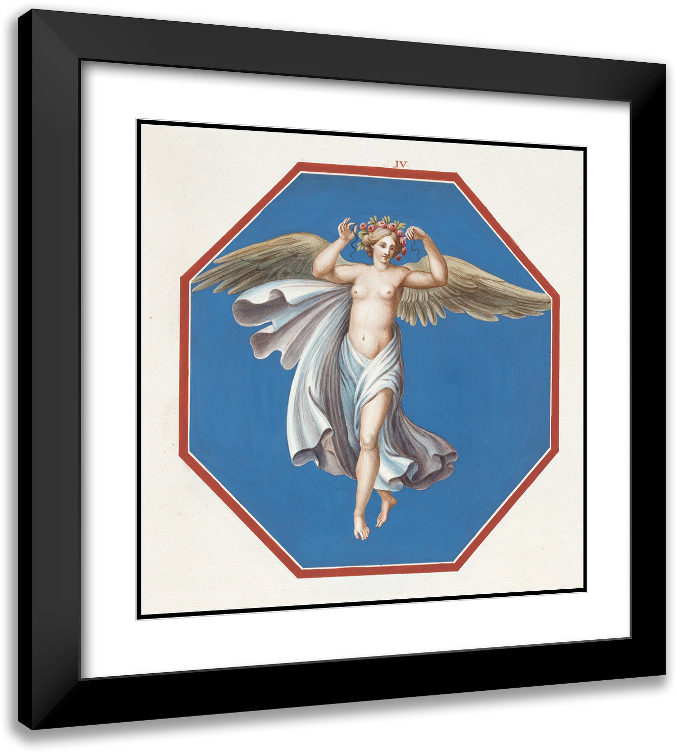 Octagonal Painting of Female Angel with Crown of Flowers. (1783)