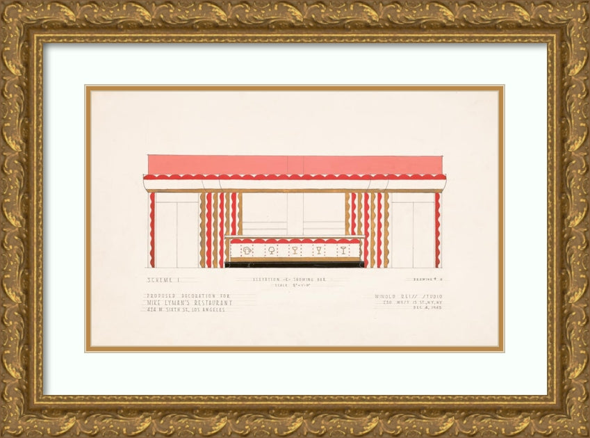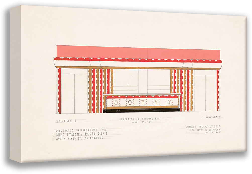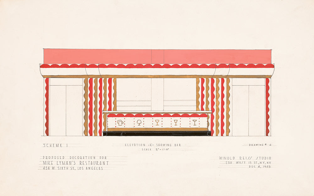 / Drawings for Proposed Decorations of Mike Lyman's Restaurant, 424 W. Sixth St. Los Angeles, Ca.) (Scheme 1; Elevation - K - Showing Bar (1945)