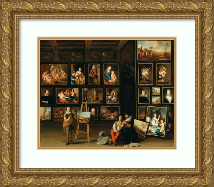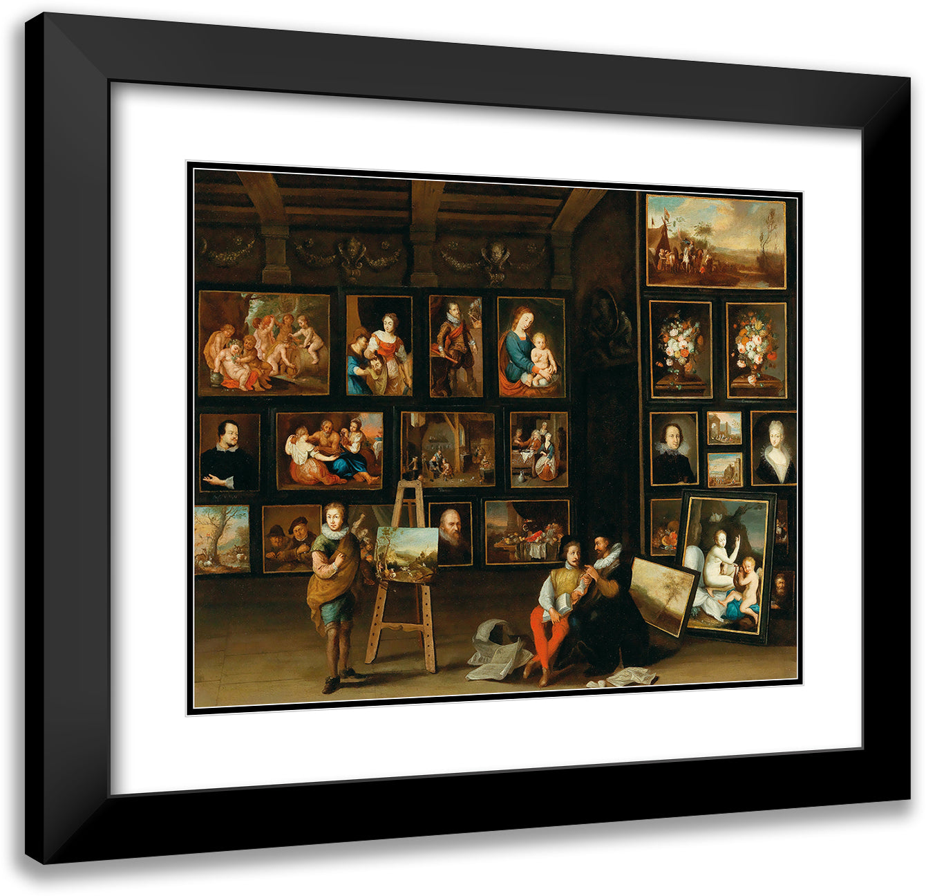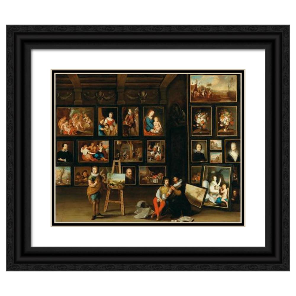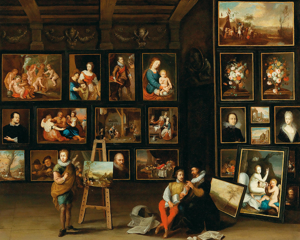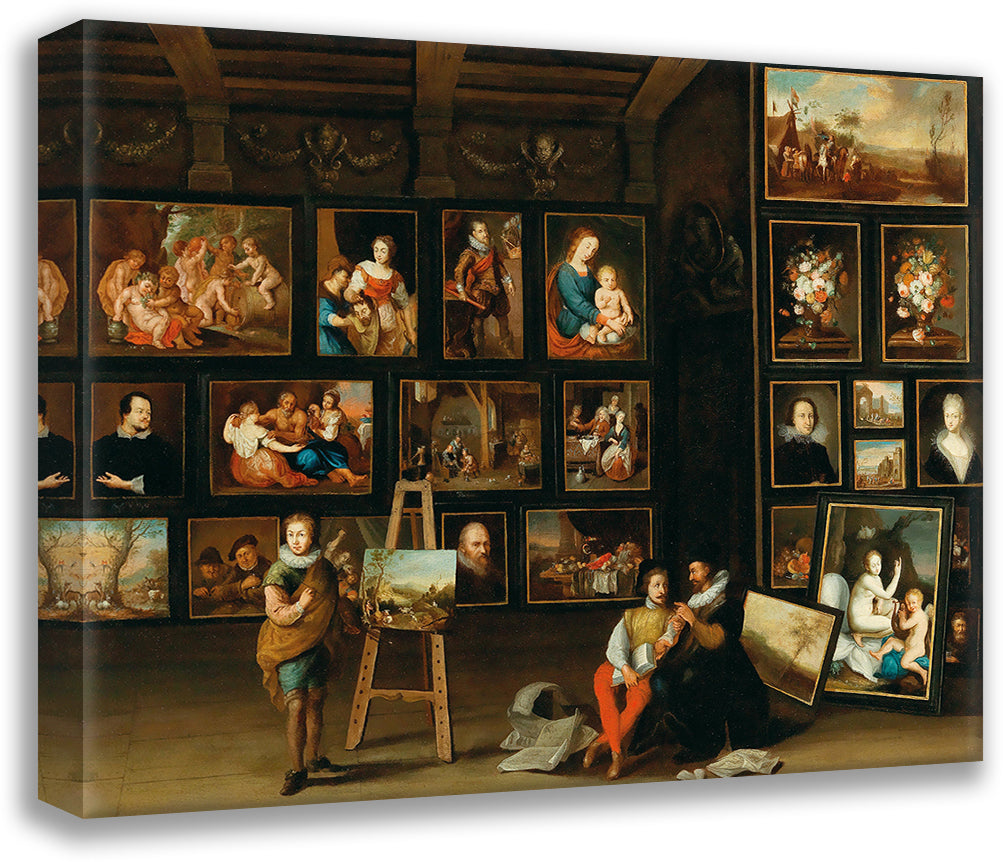 A Picture Gallery with Two Collectors and a Painter at His Easel