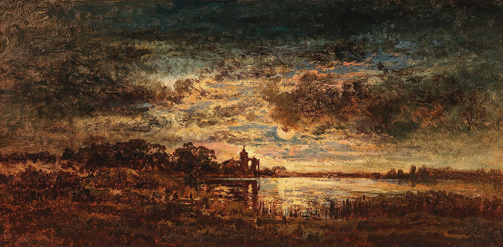 Evening Lake Landscape in the Moonlight