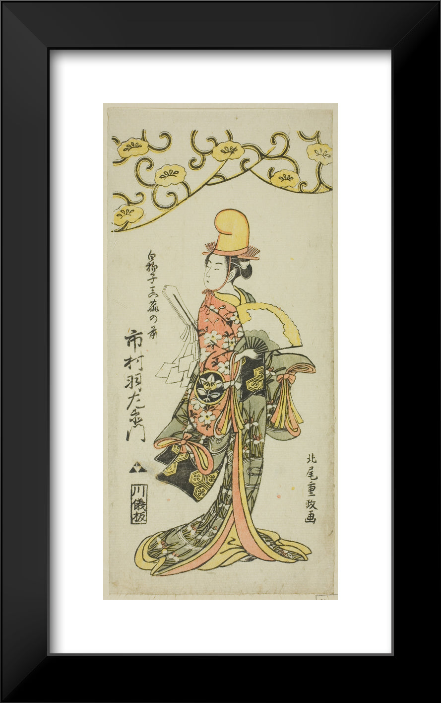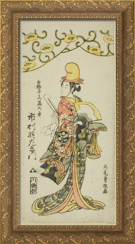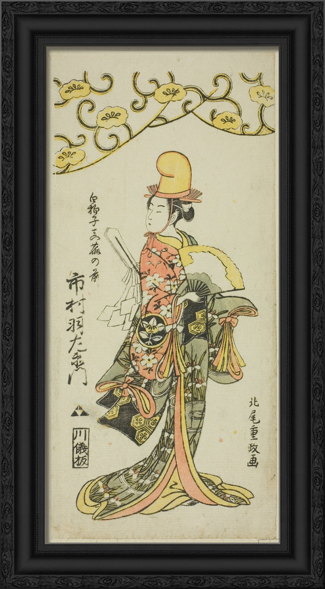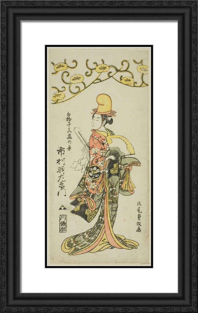• The Actor Ichimura Uzaemon IX as shirabyoshi dancer Makomo no Mae in the joruri "Iru ni Makase Yumiharizuki," performed at the Ichimura Theater in the eleventh month, 1767 by Kitao Shigemasa
