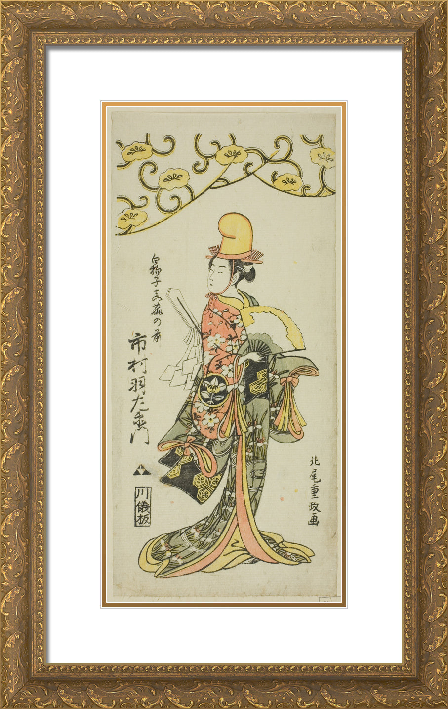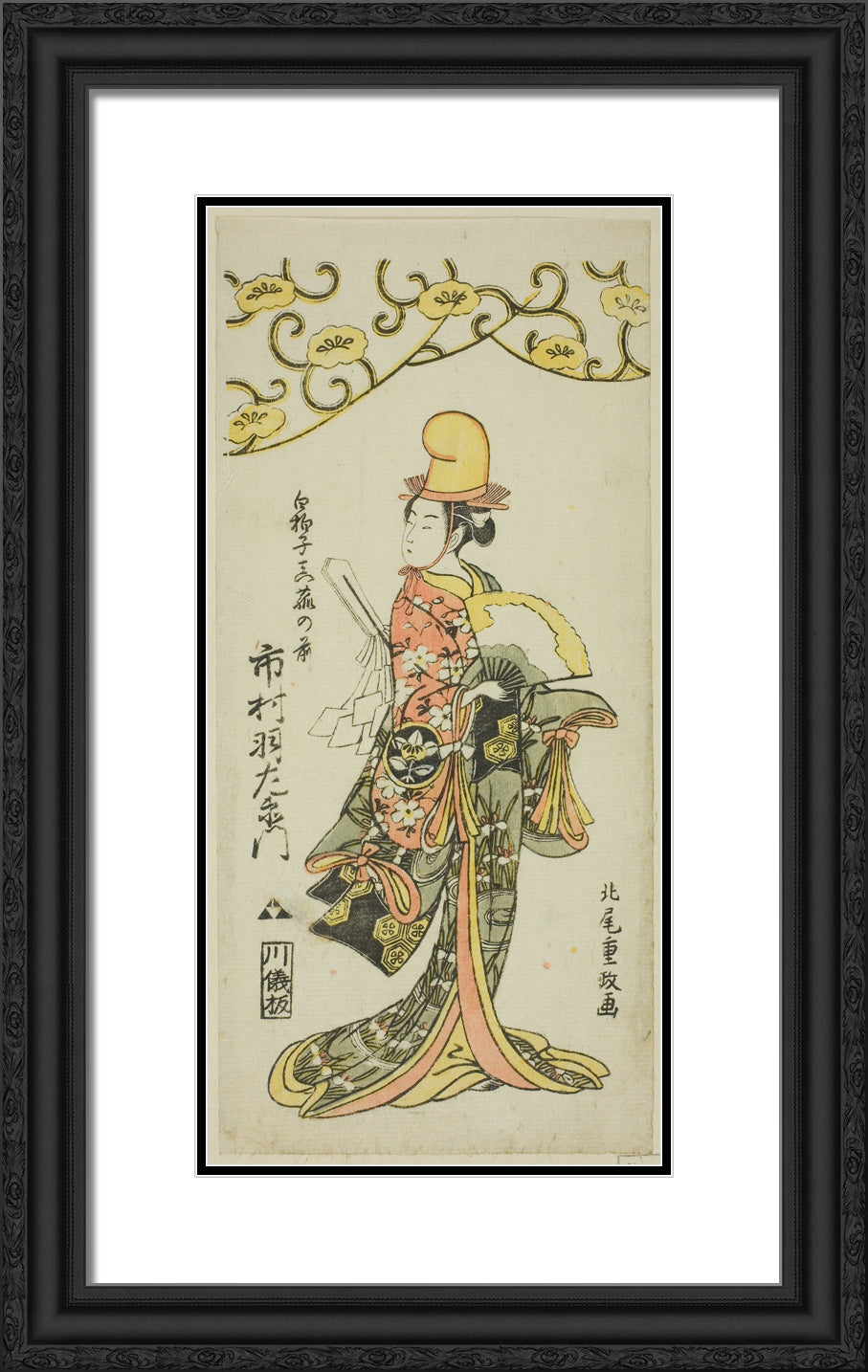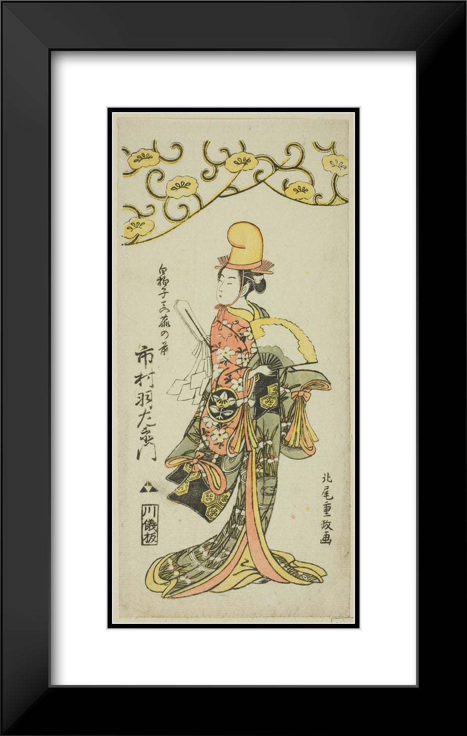 • The Actor Ichimura Uzaemon IX as shirabyoshi dancer Makomo no Mae in the joruri "Iru ni Makase Yumiharizuki," performed at the Ichimura Theater in the eleventh month, 1767 by Kitao Shigemasa