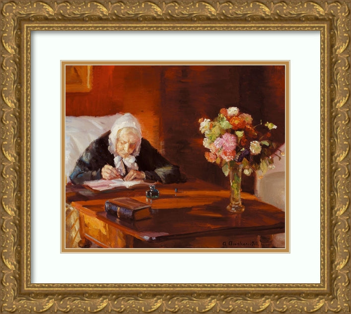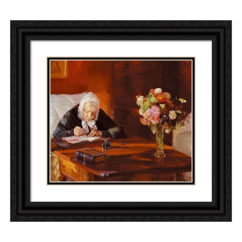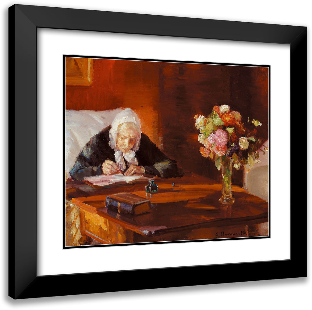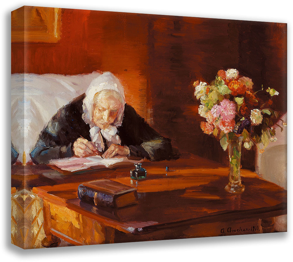 Ane Hedvig Brondum Sitting at His Desk in the Red Living Room (1910)