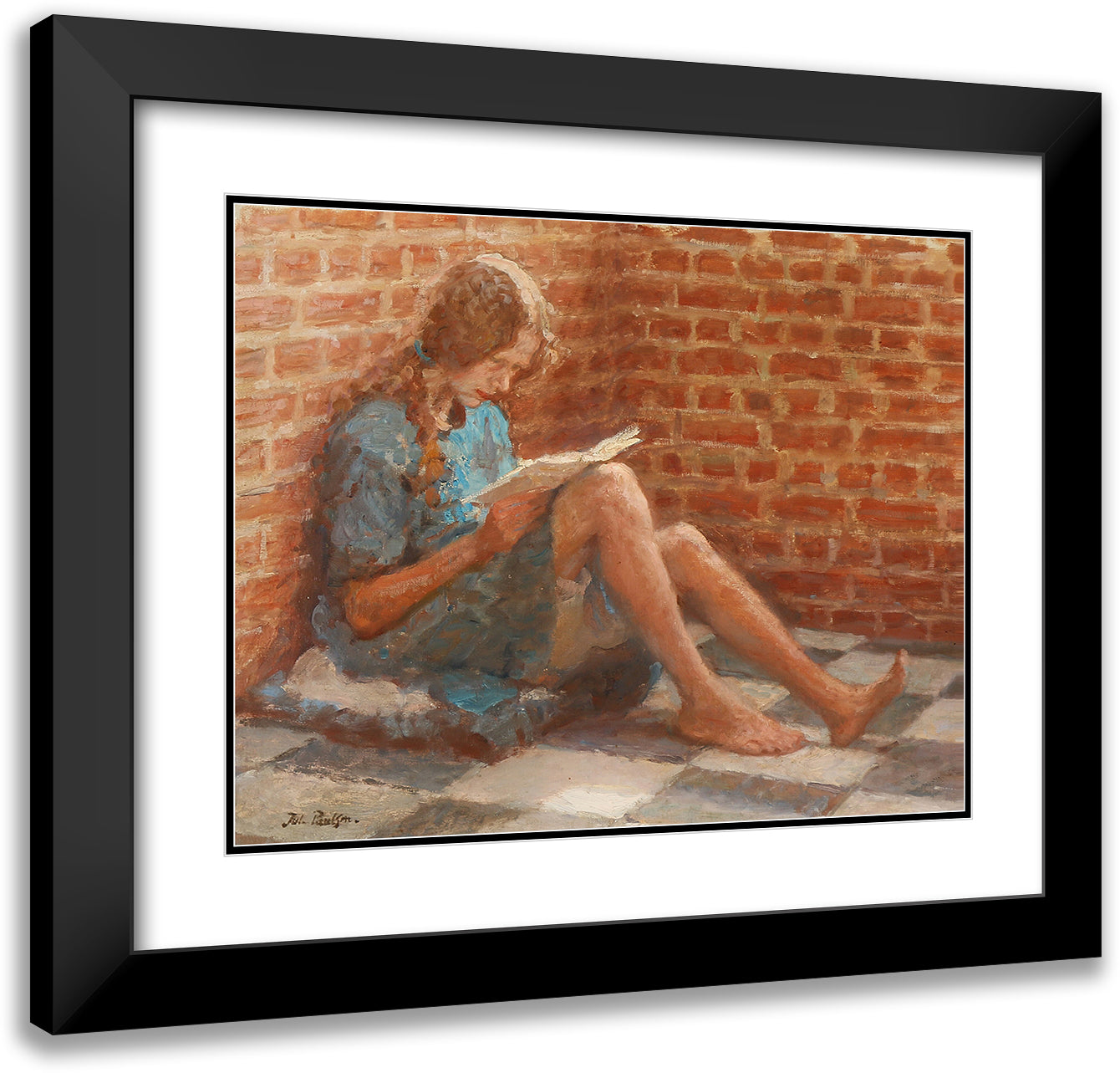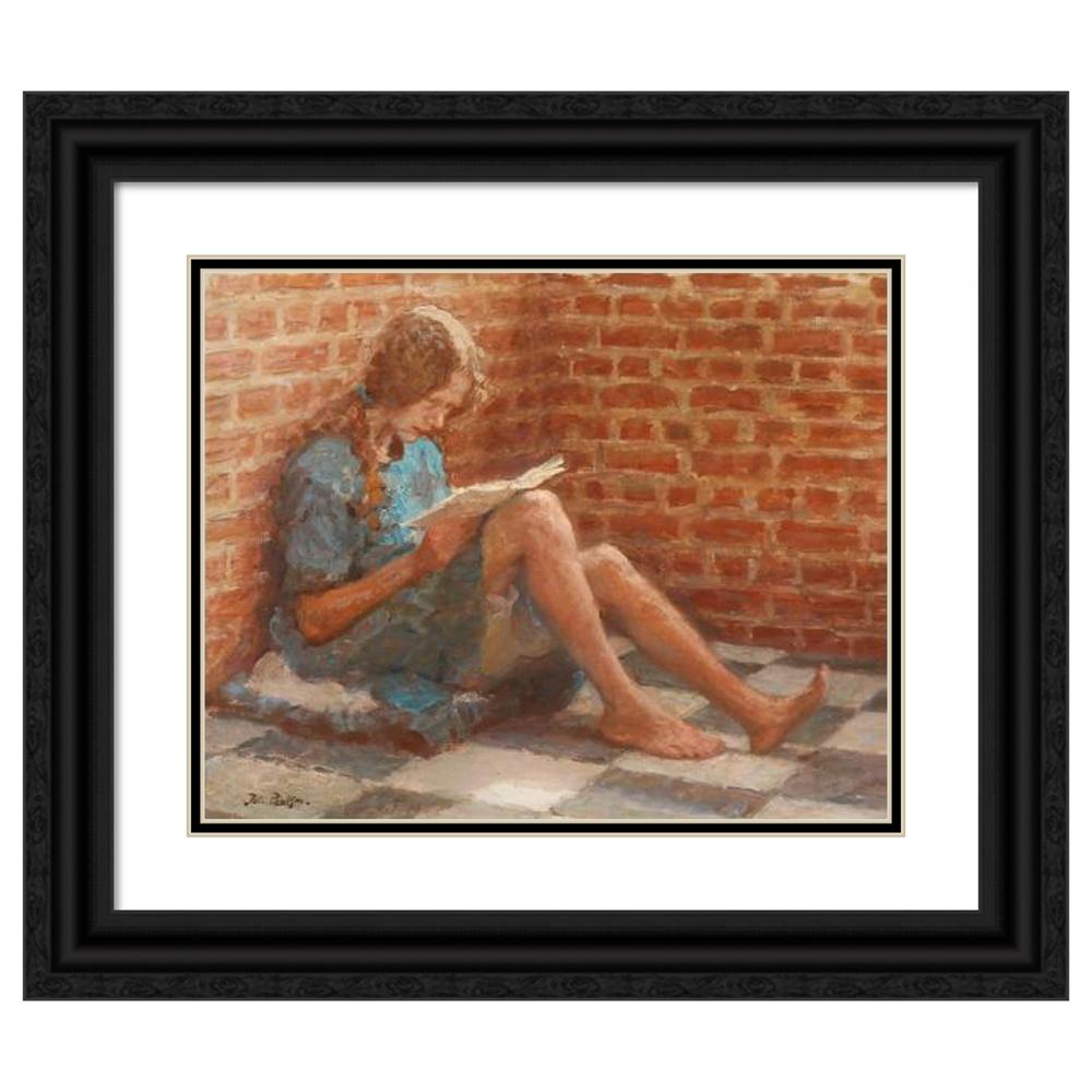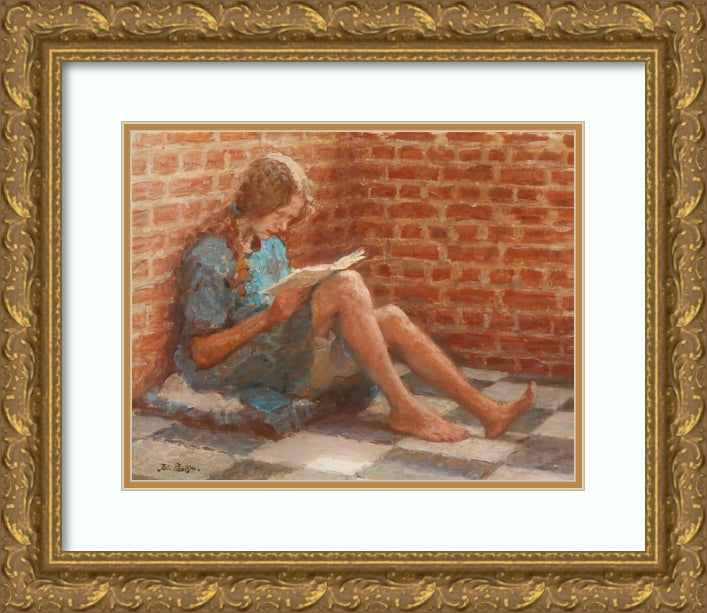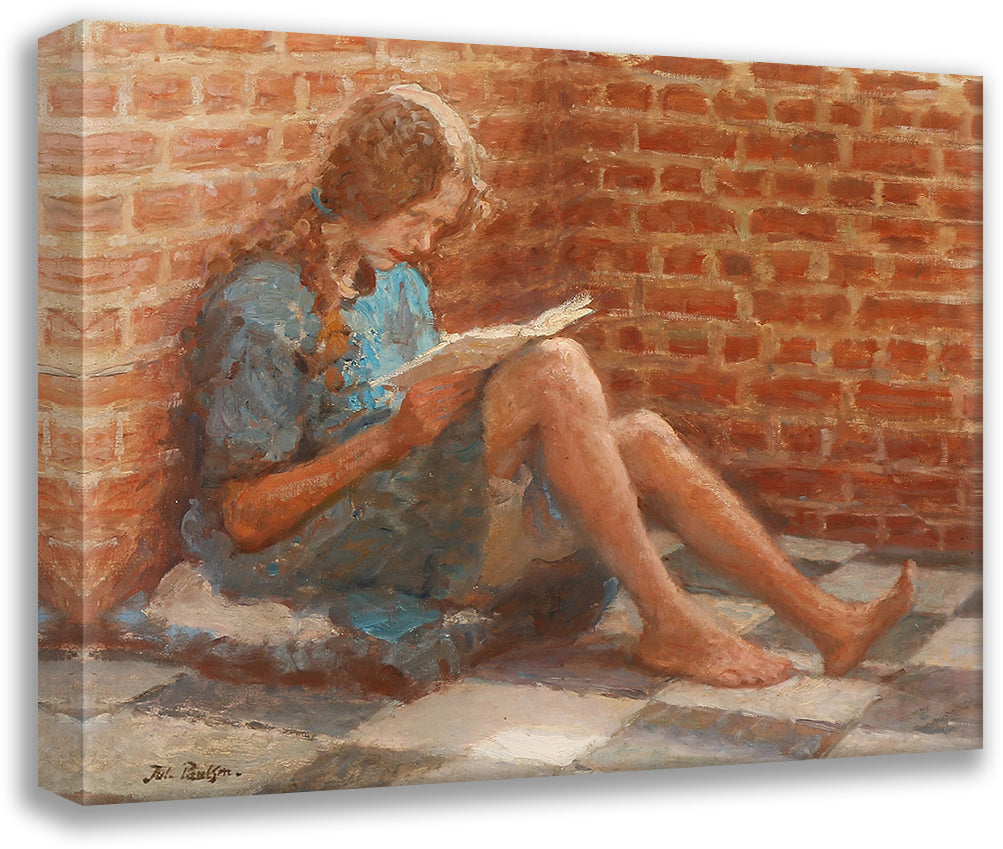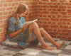 Reading Girl Sitting by a Brick Wall
