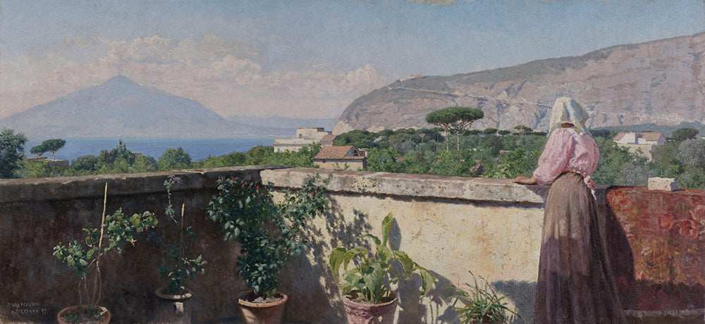 Woman on the Terrace of the Cocumella Hotel. View of Vesuvius (1897)