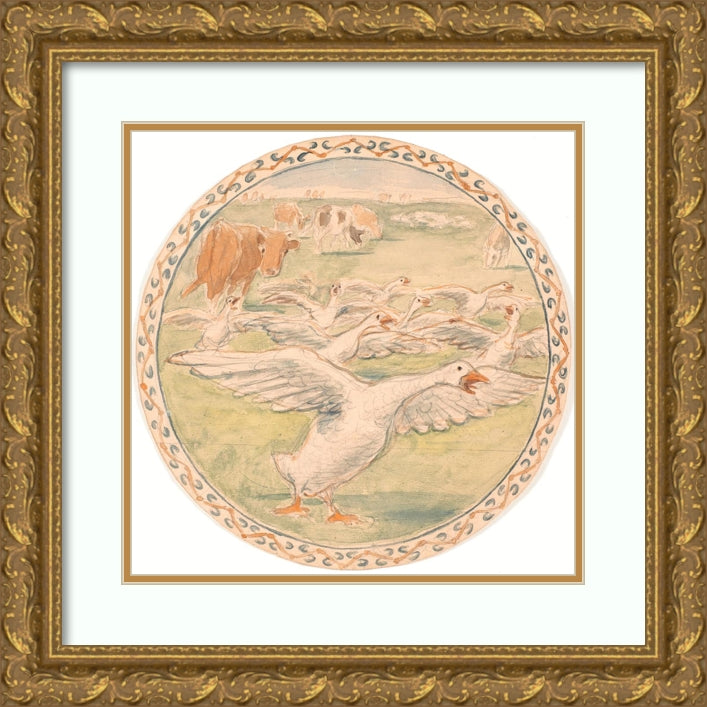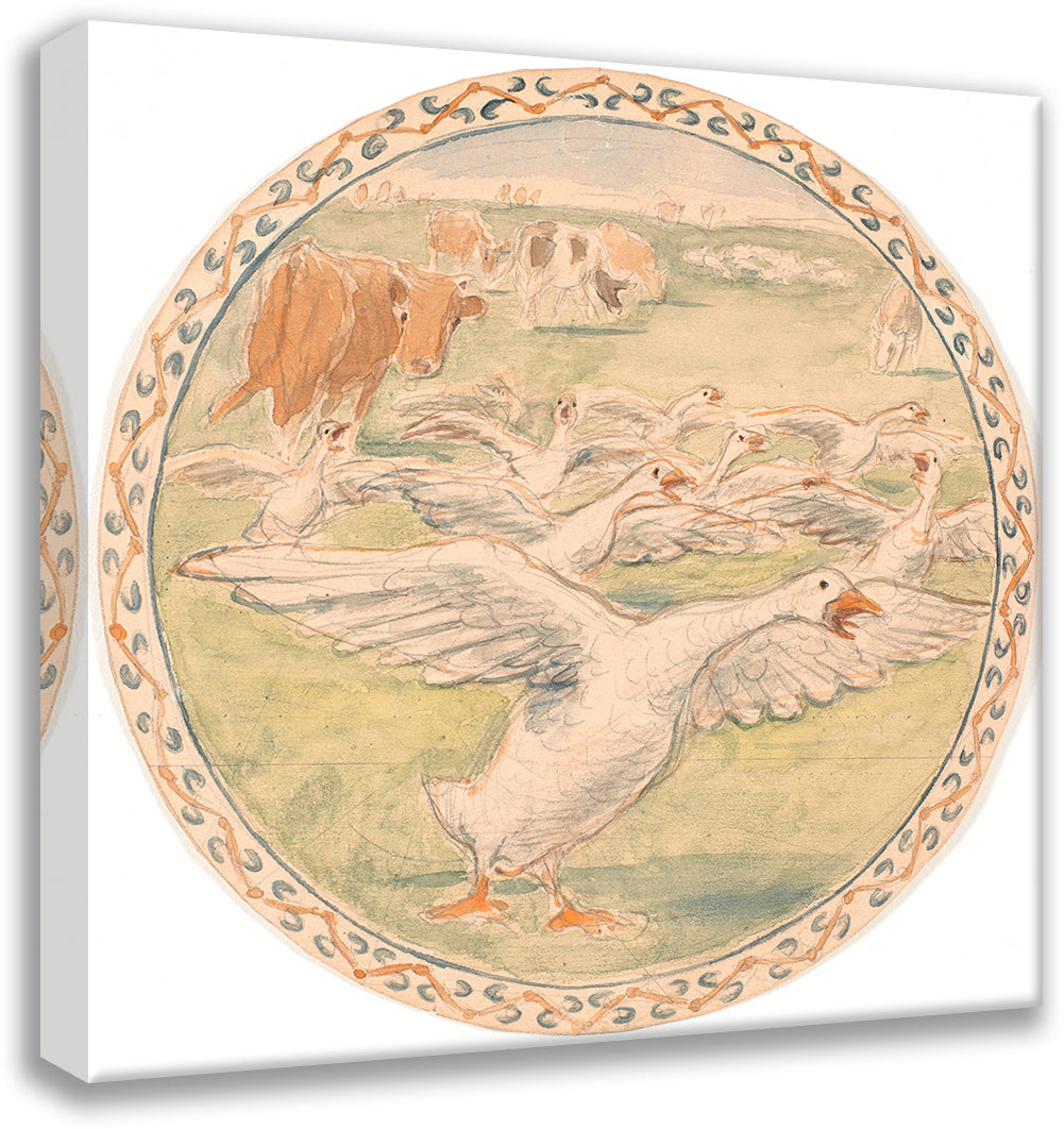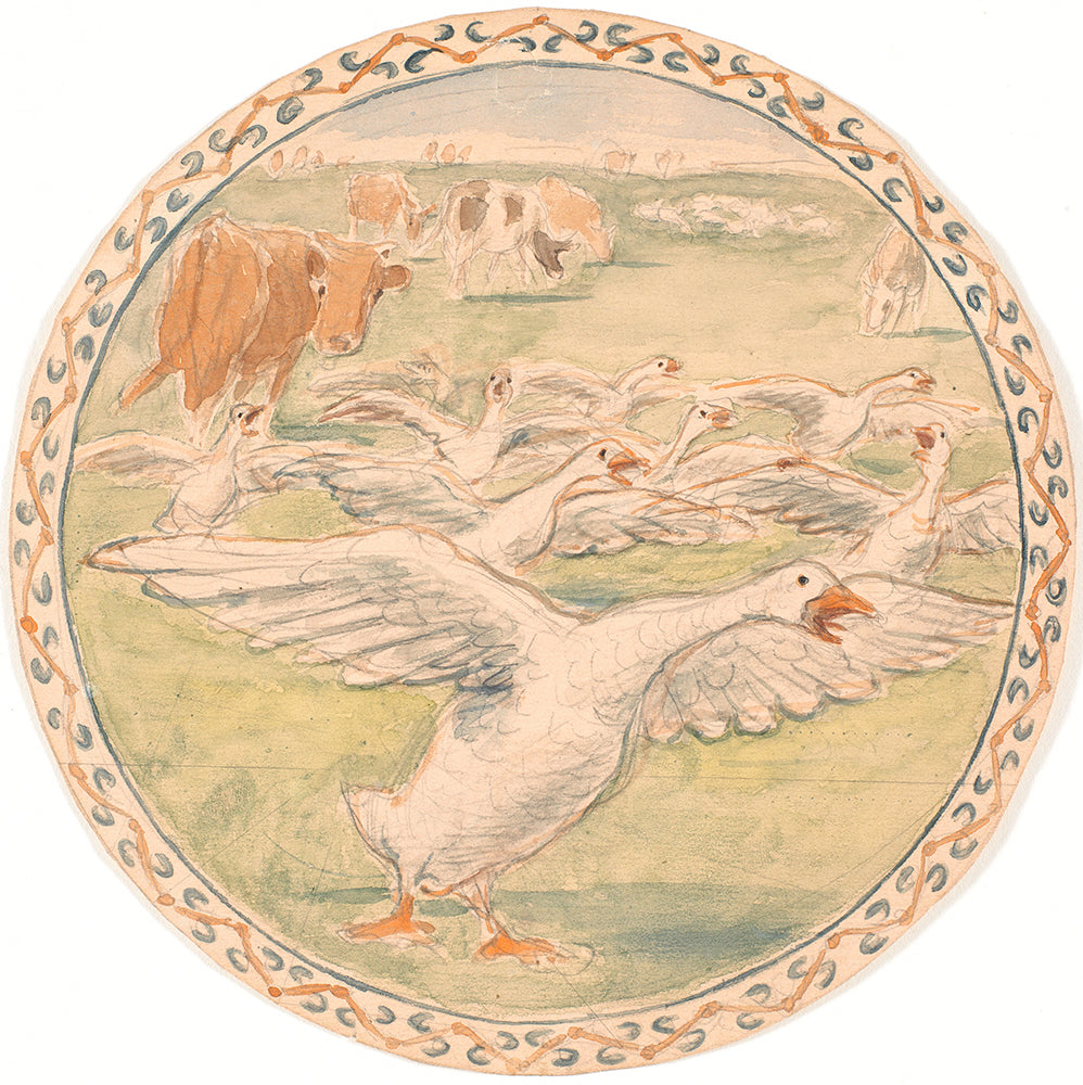 Cows and Scribbling Chickens (Draft of Ceramic Dish) (1893)