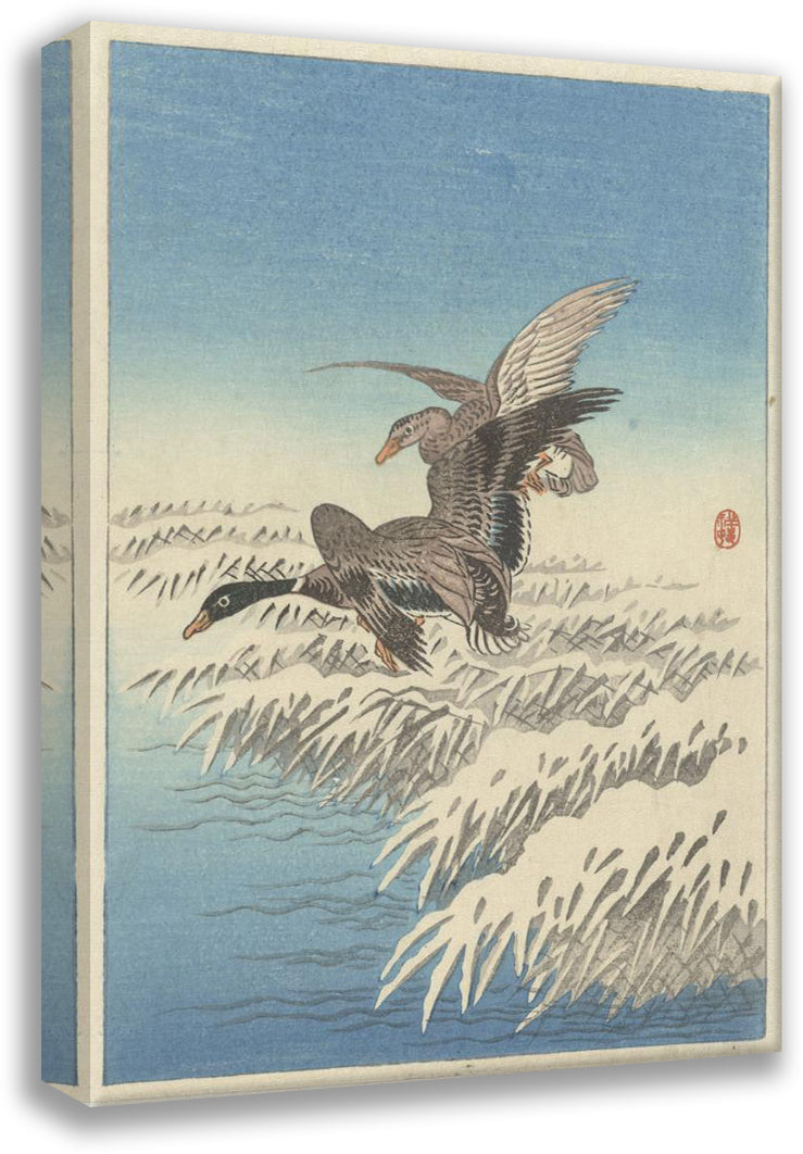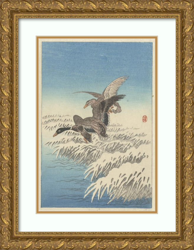 Flock of Ducks Flying Above Snowy Reed Collar (1900 - 1945)