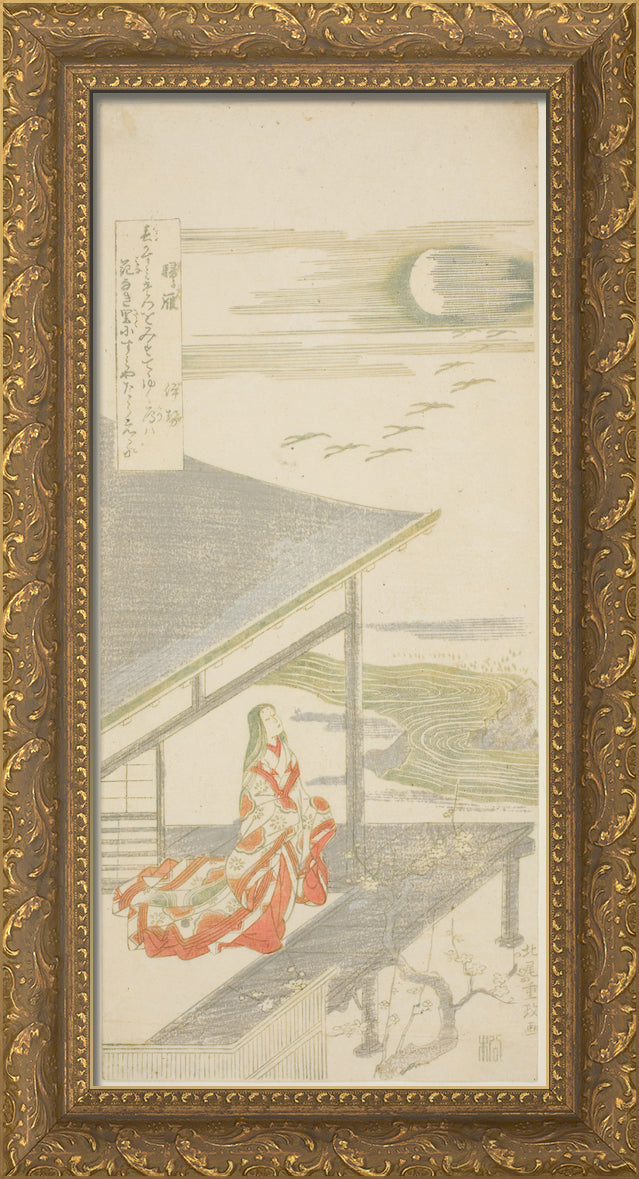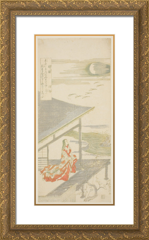 / The Poet Ise Looking Up at a Flock of Returning Geese, from an untitled series of eight views by Kitao Shigemasa