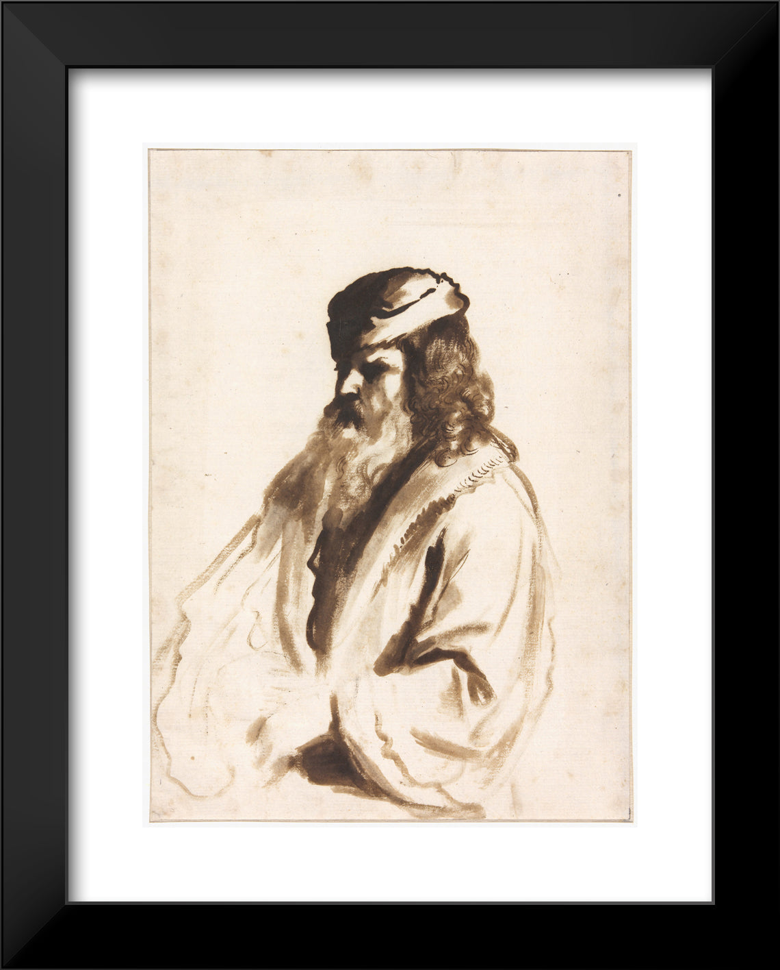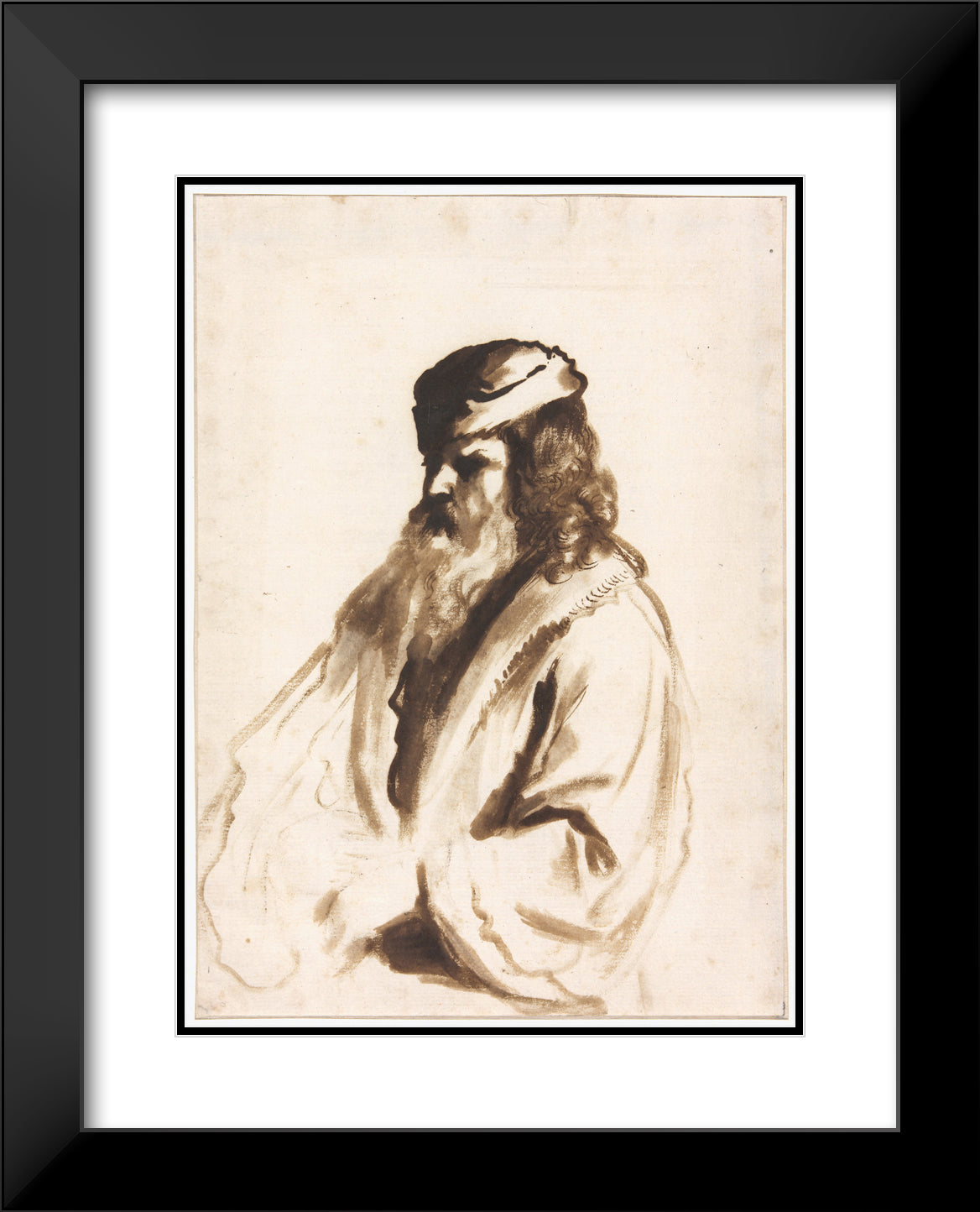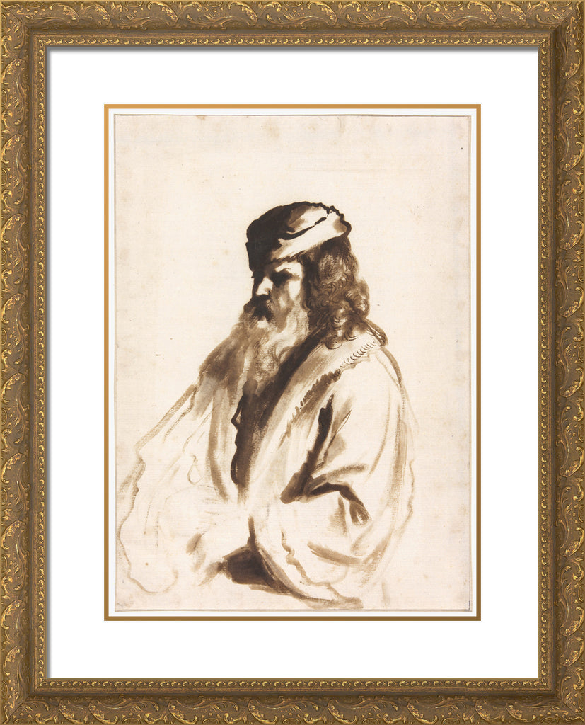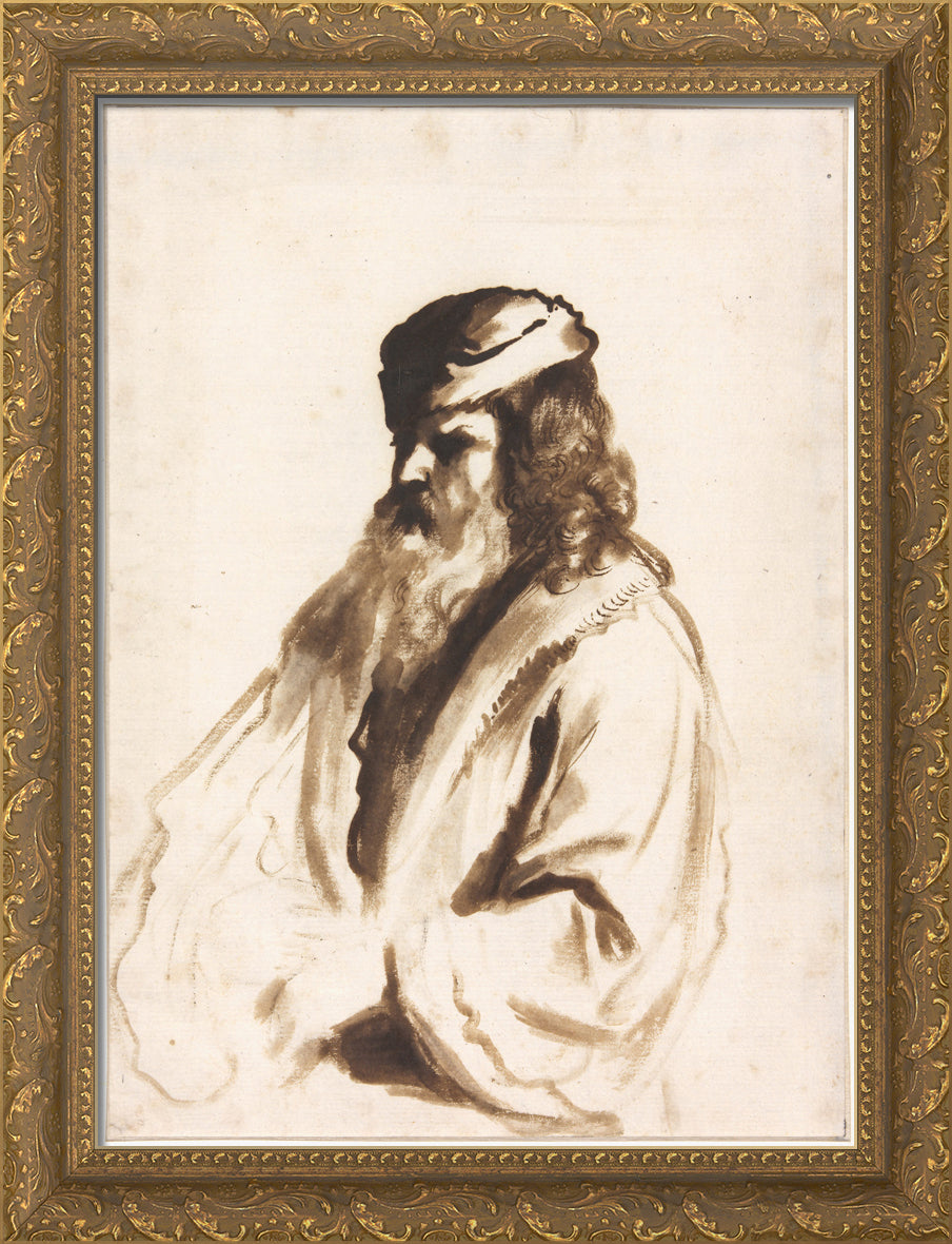 / A Bearded Figure Wearing a Turban and Fur Coat, Half Length, Turned to the Right by Gerbrand van den Eeckhout
