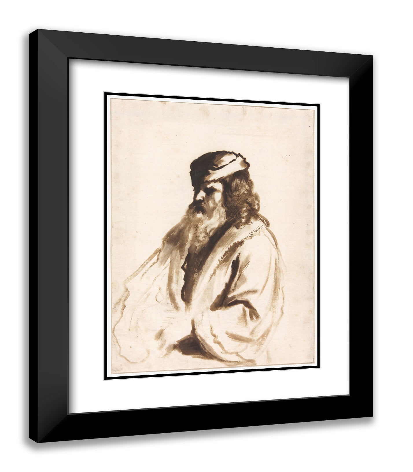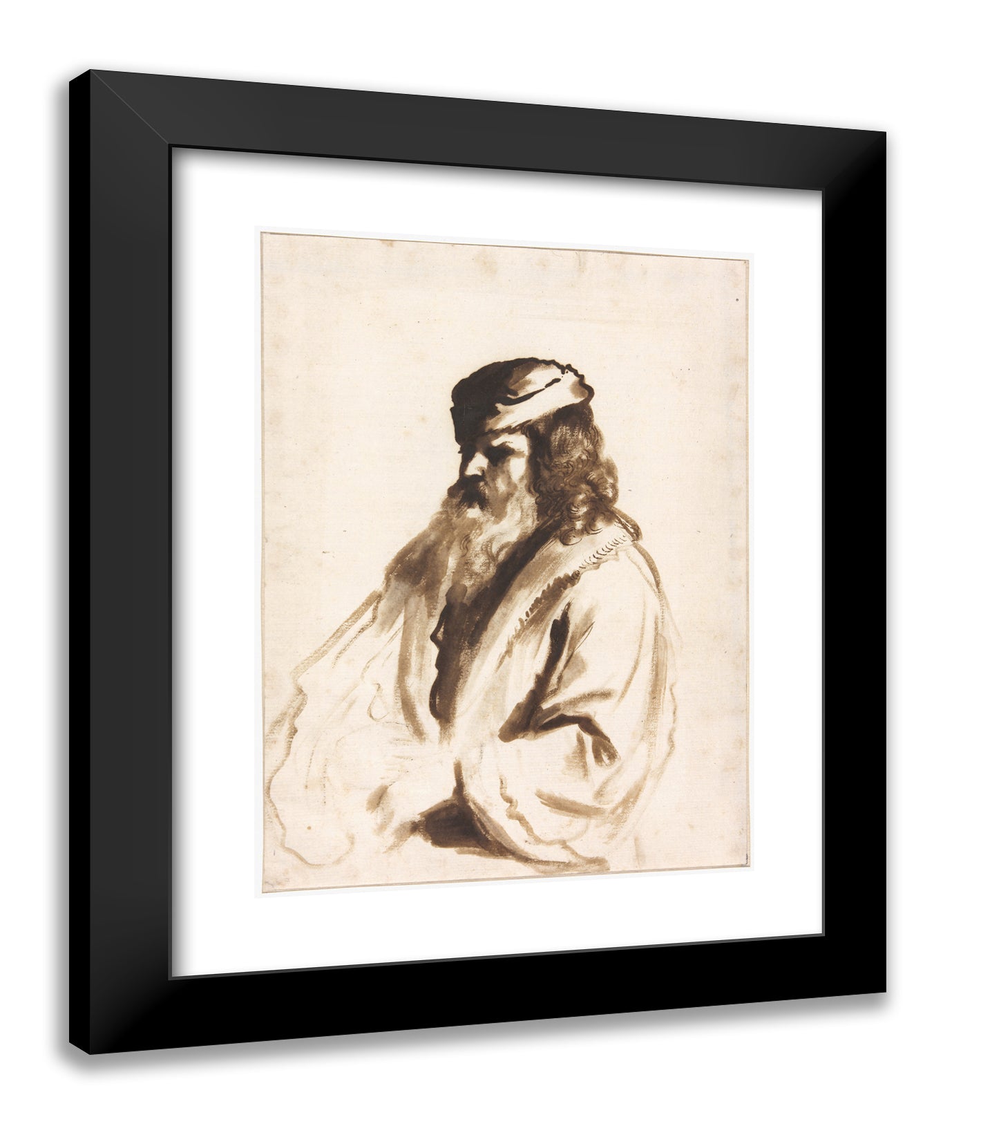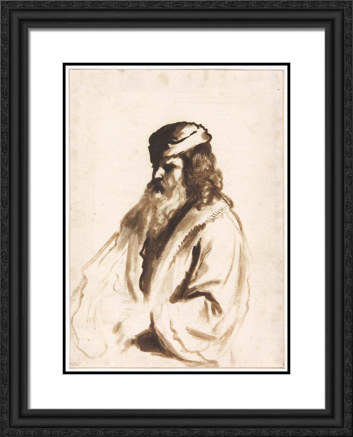 / A Bearded Figure Wearing a Turban and Fur Coat, Half Length, Turned to the Right by Gerbrand van den Eeckhout